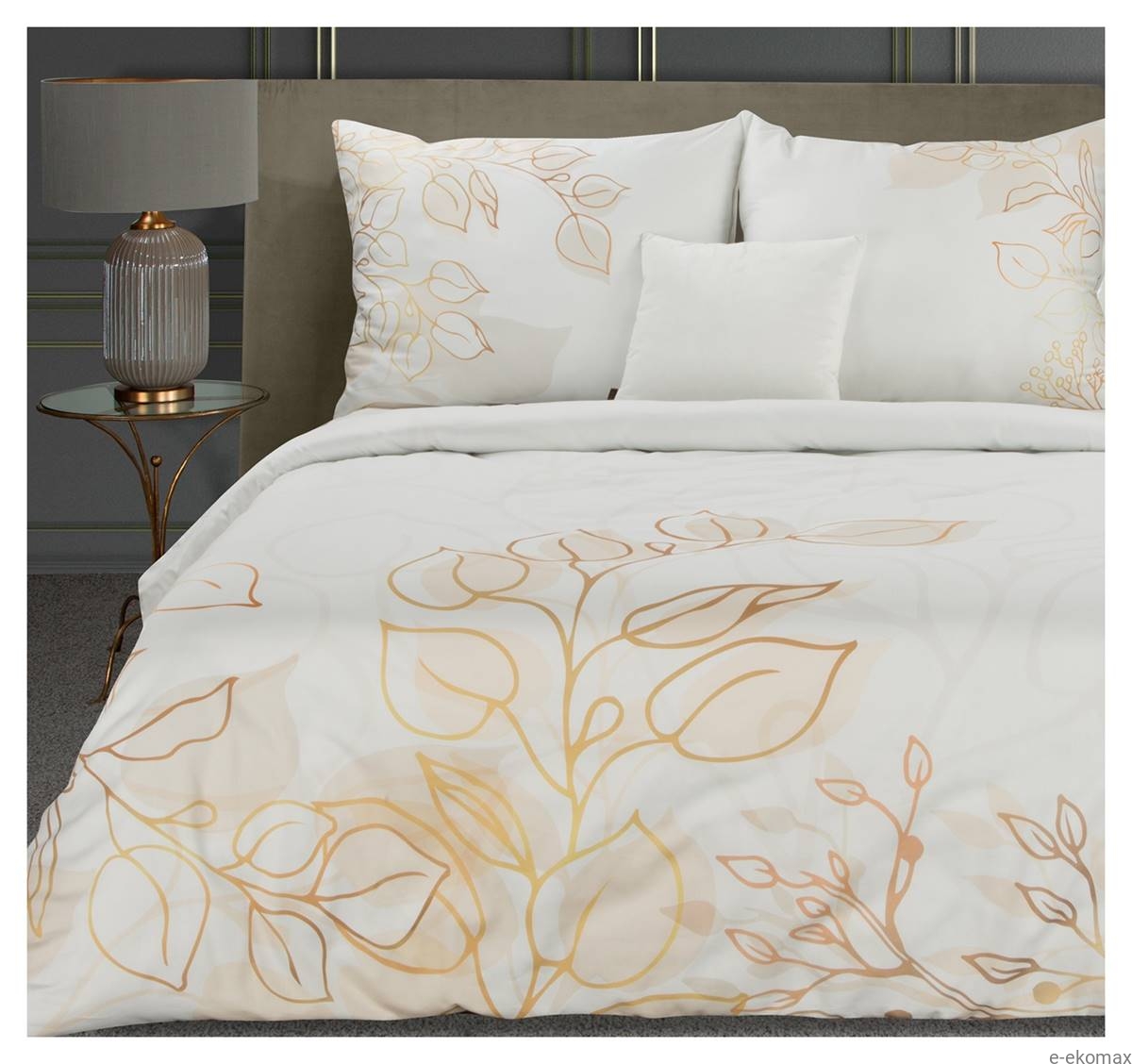 Wprowadź do swojej sypialni szczyptę luksusu dzięki kompletowi ekskluzywnej pościeli Blanca Limited Collection 160x200. Połączenie wyjątkowego designu z najwyższej jakości tkaniną sprawia, że każda noc staje się prawdziwą przyjemnością. Delikatny wzór w odcieniach złota na tle subtelnej bieli tworzy elegancką kompozycję, która idealnie pasuje do wnętrz w klasycznym lub nowoczesnym stylu. Jedwabista w dotyku makosatyna otula ciało miękkością, zapewniając komfort zarówno latem, jak i zimą.