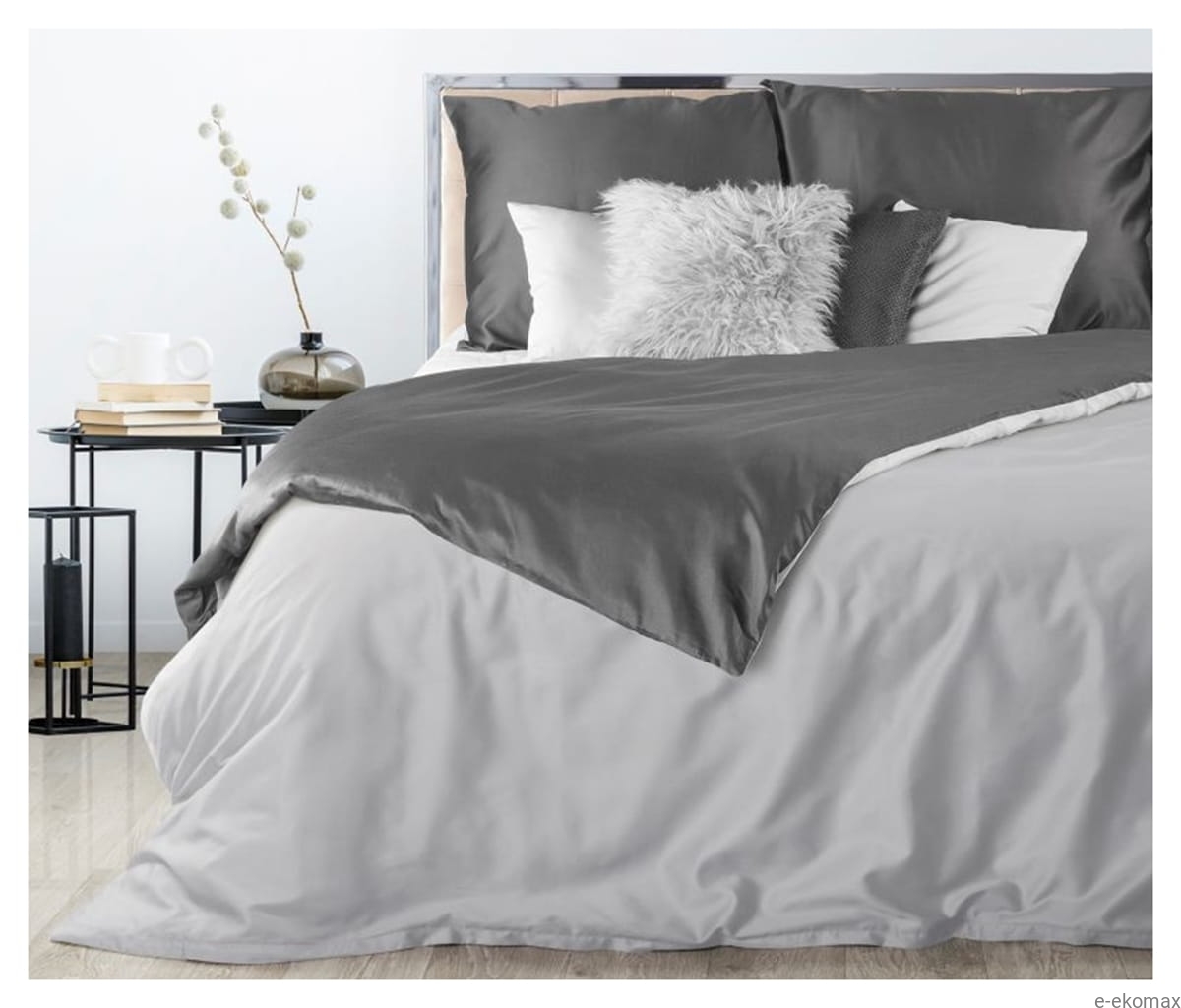 Ekskluzywny komplet dwustronnej pościeli wykonany z wysokiej jakości makosatyny egipskiej to propozycja dla osób ceniących elegancję, komfort i trwałość. Gładka, jednolita powierzchnia w nowoczesnej kolorystyce srebrno-stalowej nadaje sypialni ponadczasowy, luksusowy charakter i doskonale komponuje się zarówno z klasycznymi, jak i nowoczesnymi aranżacjami.