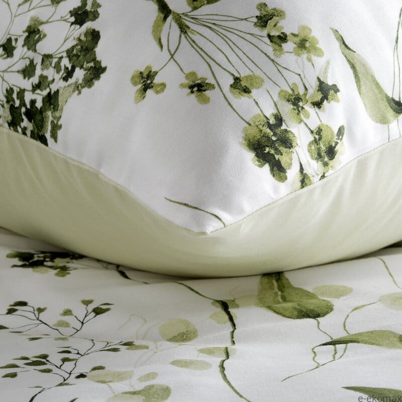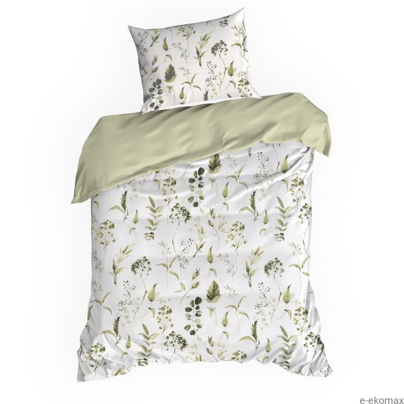 Pościel satyna bawełniana 140x200 – delikatny roślinny wzór w odcieniach zieleni