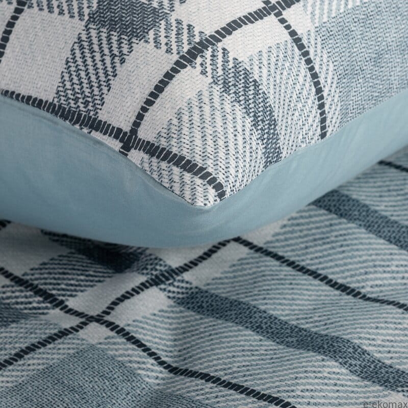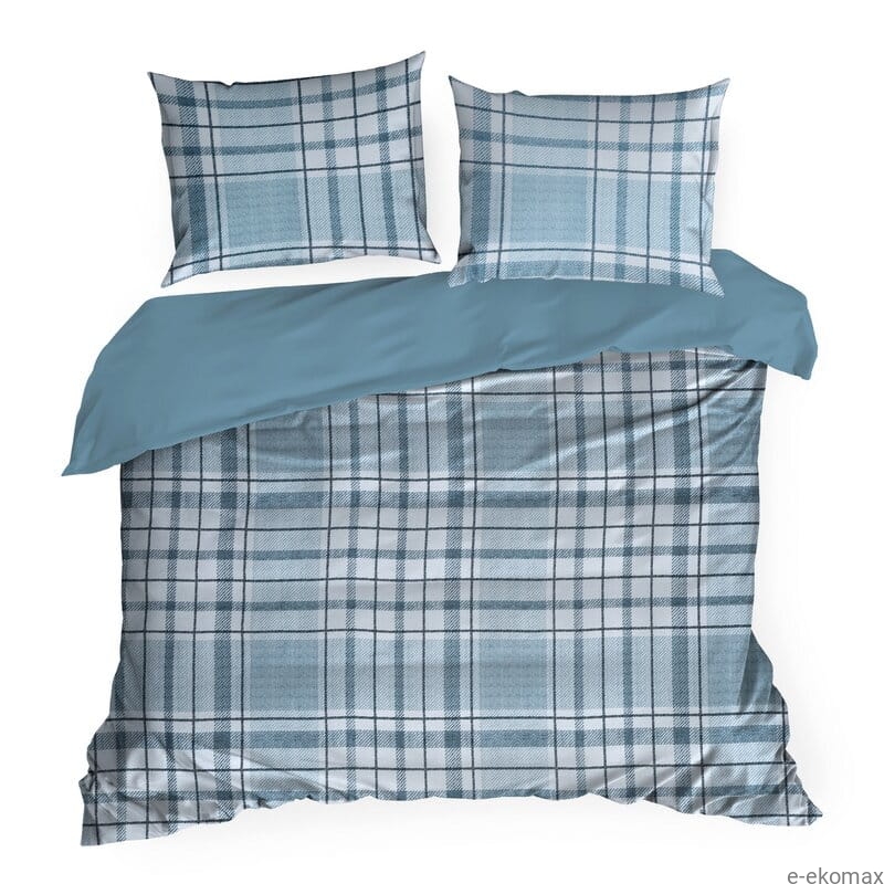 Komplet pościeli z bawełny satynowej 220x200 w błękitną kratę