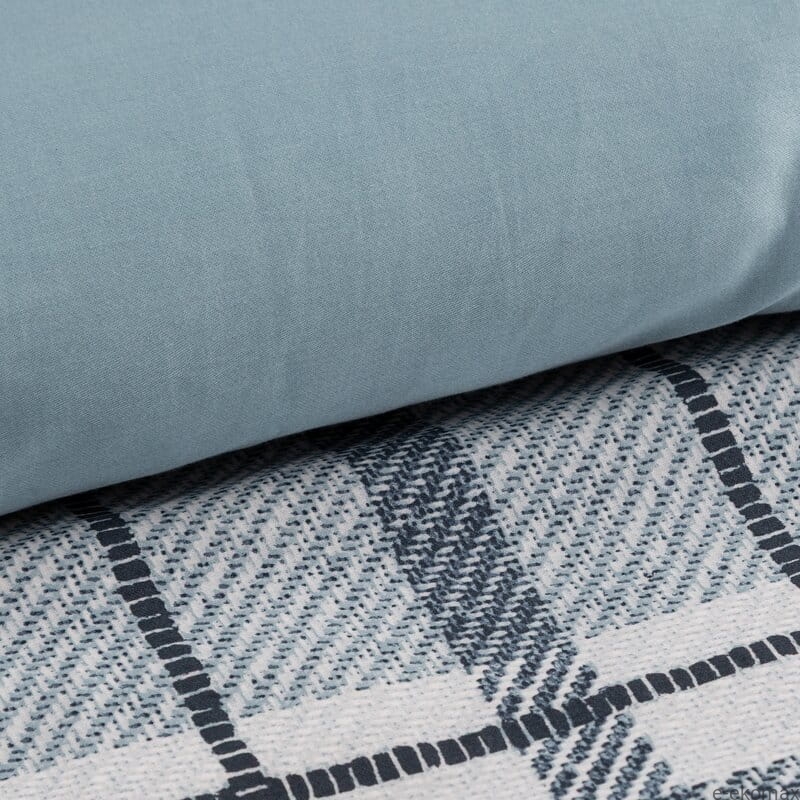 Komplet pościeli satynowej 220x200 cm w klasyczną kratę to eleganckie połączenie ponadczasowego wzornictwa i wyjątkowego komfortu snu. Subtelne odcienie błękitu, szarości i bieli tworzą harmonijną kompozycję, która nadaje sypialni świeżości i przytulnego charakteru. Wzór w kratę doskonale wpisuje się zarówno w aranżacje nowoczesne, skandynawskie, jak i klasyczne.