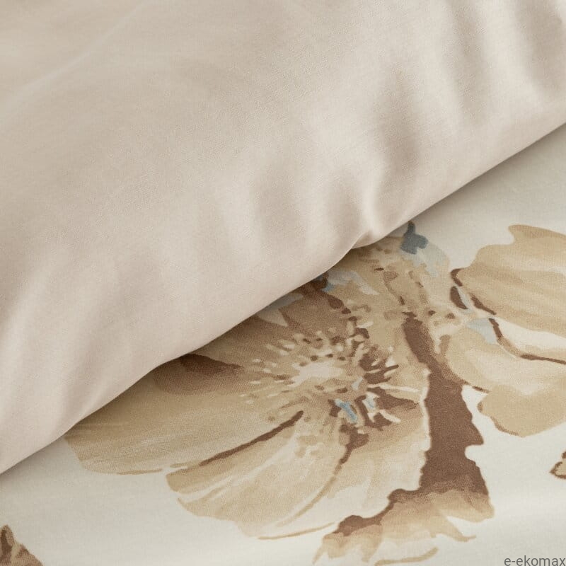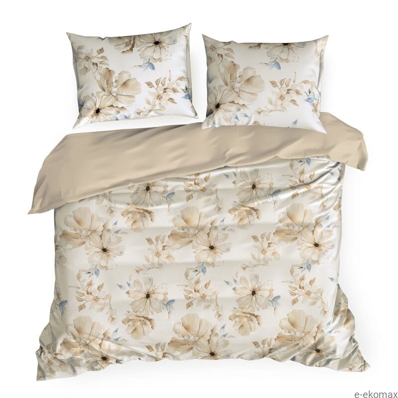 Komplet pościeli z bawełny satynowej 220x200 w odcieniach beżu w kwiaty