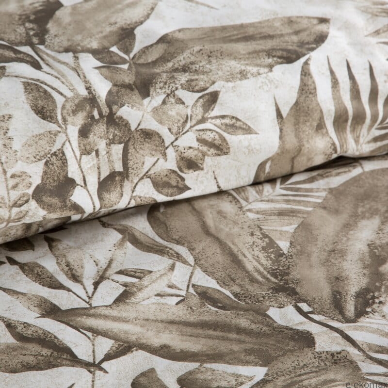 Komplet pościeli z bawełny satynowej beżowo brązowa Spring 220x200 kompozycja roślin i liści