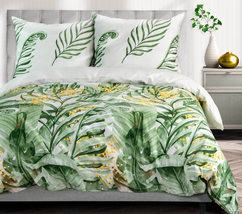 Pościel satynowo bawełniana 220x200 z tropikalnym motywem to idealna propozycja dla osób, które cenią świeżość natury i odrobinę egzotyki w sypialni. Soczyste odcienie zieleni połączone z subtelnymi żółtymi akcentami tworzą harmonijną kompozycję inspirowaną bujną roślinnością, która wnosi do wnętrza energię i naturalny spokój.