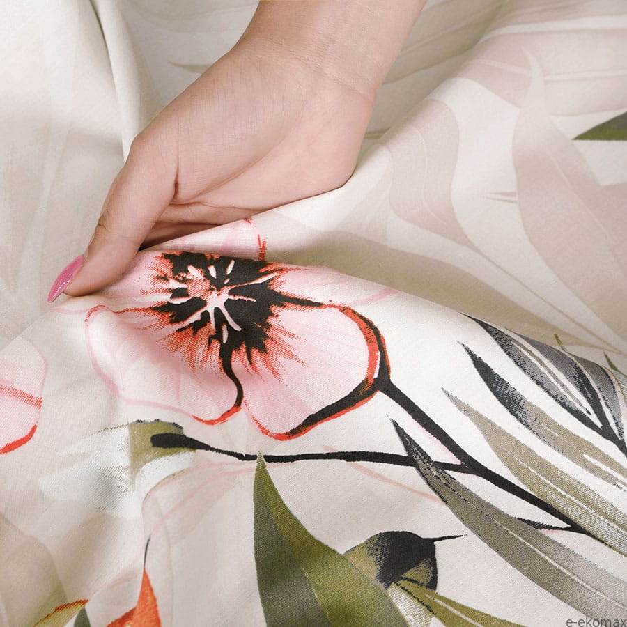 Egzotyczny komplet pościeli z bawełny satynowej 220x200 w kwiaty hibiskusa o gramaturze 115 GSM to doskonały wybór dla tych, którzy pragną wprowadzić do swojej sypialni powiew tropikalnej świeżości. Wykonany z wysokogatunkowej bawełny satynowej, oferuje nie tylko luksusową miękkość, ale także wyjątkową trwałość. Delikatny, satynowy splot materiału sprawia, że pościel jest przyjemna dla skóry, zapewniając komfortowy i relaksujący sen.