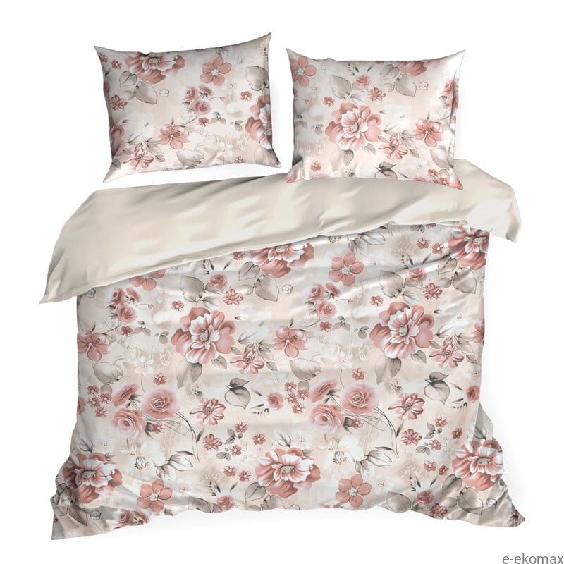 Pościel 160x200 w duże różowe kwiaty to eleganckie połączenie klasycznego wzornictwa z romantycznym urokiem kwiatowych motywów. Delikatna tkanina ozdobiona jest subtelnym, pastelowym nadrukiem różowych kwiatów i beżowo-szarych liści, które harmonijnie komponują się z jasnym tłem, nadając całości lekkości i świeżości. Dzięki tej kolorystyce pościel doskonale wpisuje się w sypialnie urządzone w stylu klasycznym, vintage oraz shabby chic, tworząc atmosferę spokoju i przytulności.