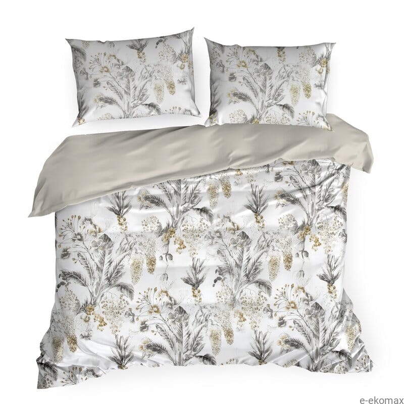 Wzór pościeli inspirowany jest naturą, przedstawiając eleganckie, delikatne roślinne motywy w stonowanej kolorystyce. Połączenie czerni, popieli i beżu na jasnym tle tworzy harmonijną kompozycję, która doda wnętrzu wyrafinowanego charakteru. Klasyczne i subtelne desenie sprawiają, że pościel pasuje zarówno do nowoczesnych, jak i bardziej klasycznych aranżacji sypialni, wprowadzając atmosferę ciepła i spokoju.