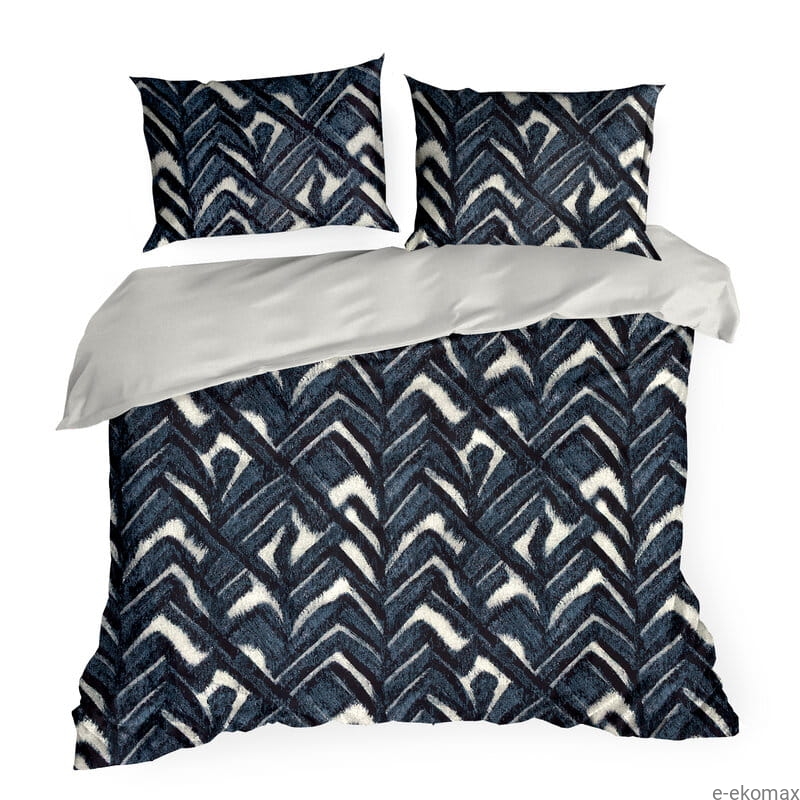 Komplet pościeli z bawełny satynowej Spring 220x200 geometryczny wzór w granacie, czerni i bieli