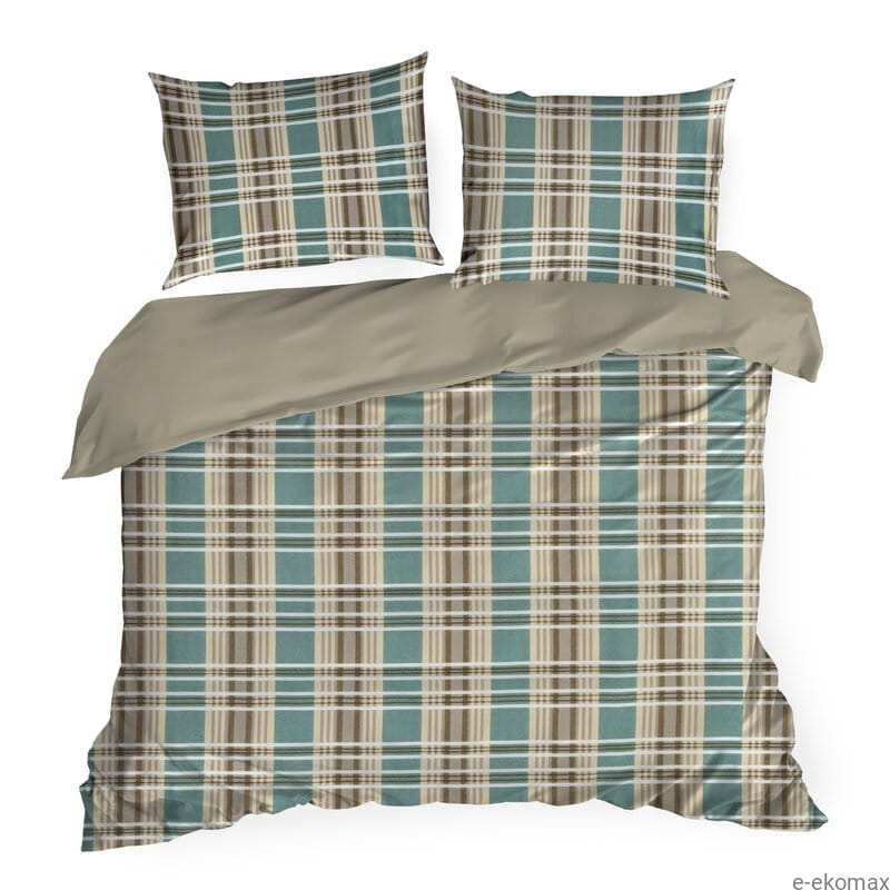 Komplet pościeli z bawełny satynowej Spring 220x200 zielono beżowa w kratę