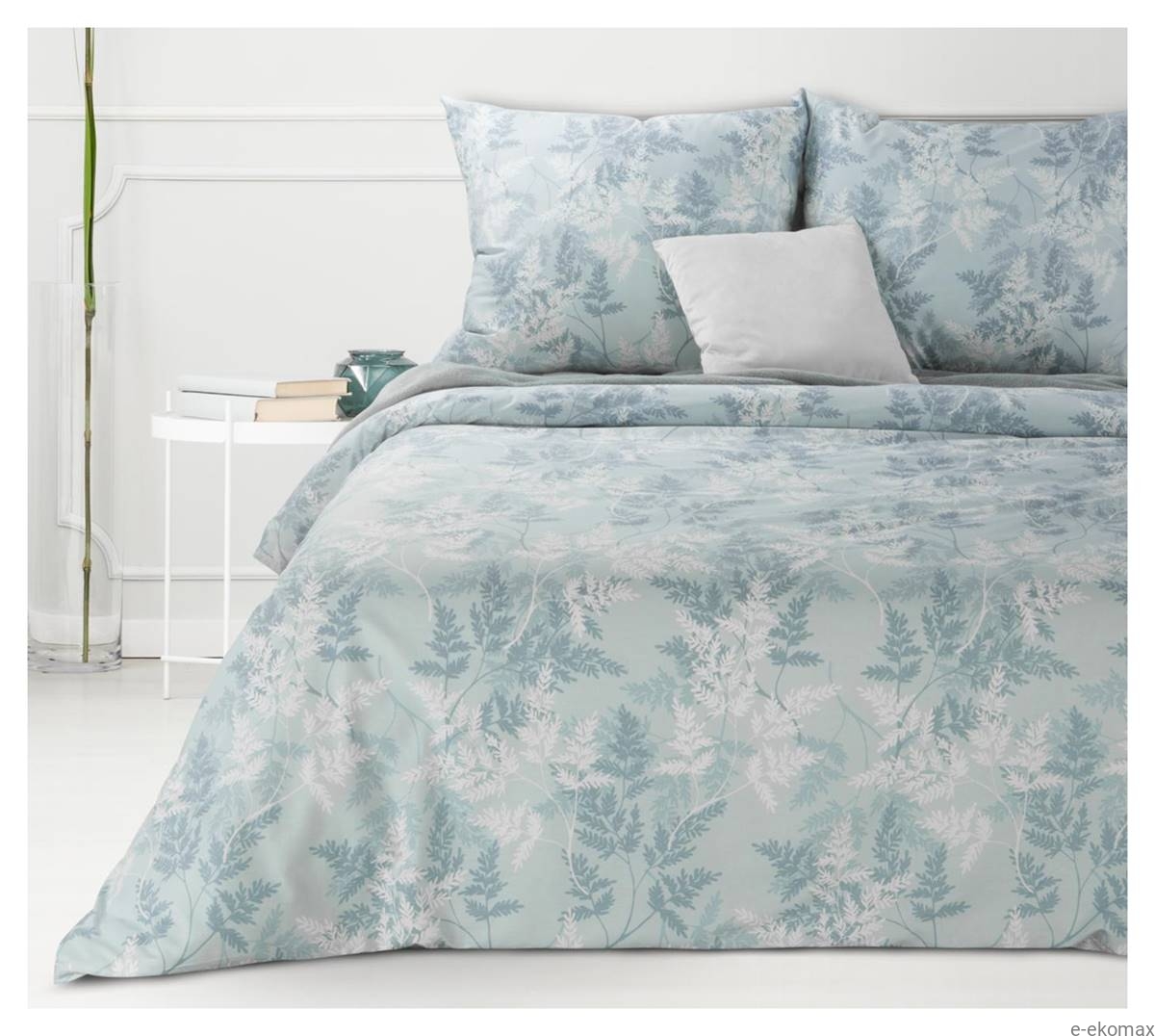 Komplet pościeli bawełnianej błękitnej w listki 220x200 Sara