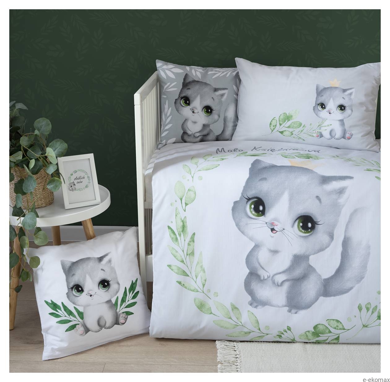 Komplet pościeli bawełnianej białej do łóżeczka 100x135 Kotek