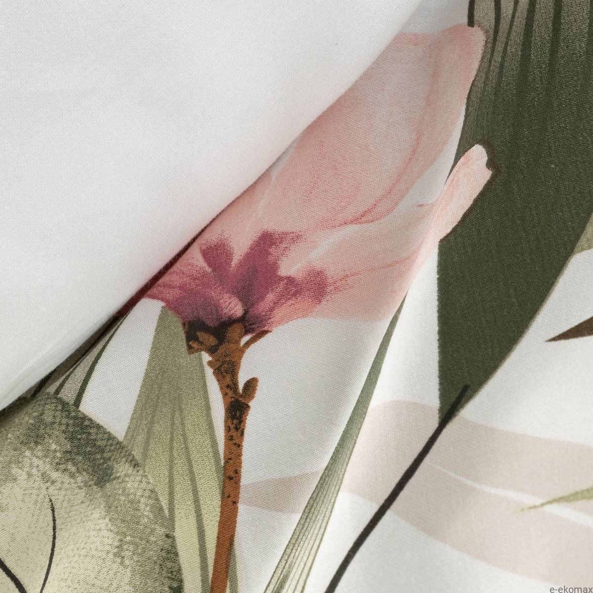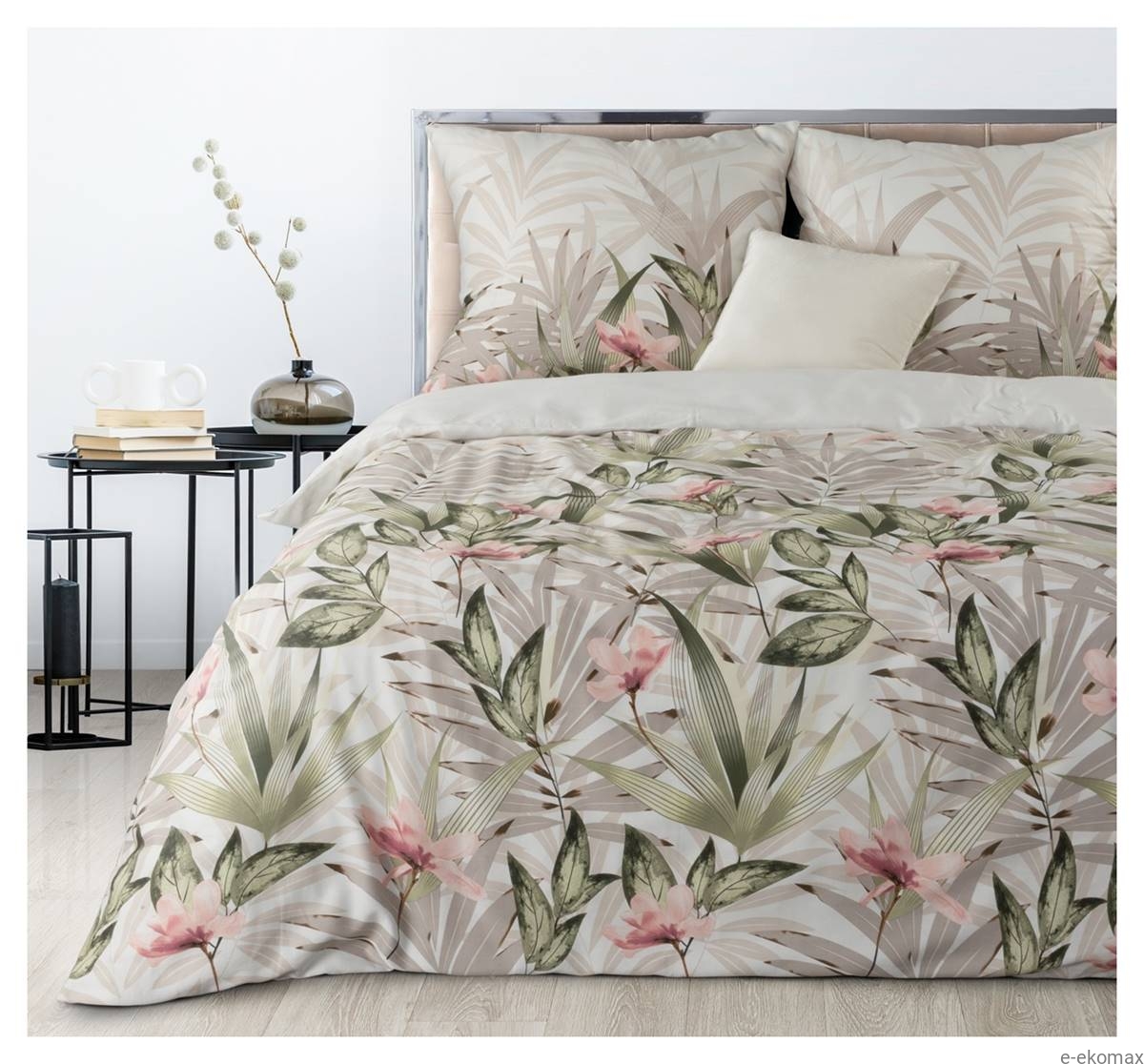 Komplet pościeli z bawełny satynowej 220x200 w liście i kwiaty