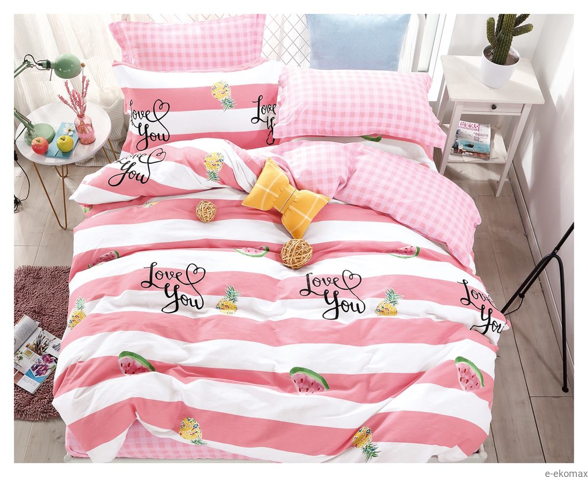 Komplet pościeli dwustronnej biało różowej 160x200 w pasy i ananasy