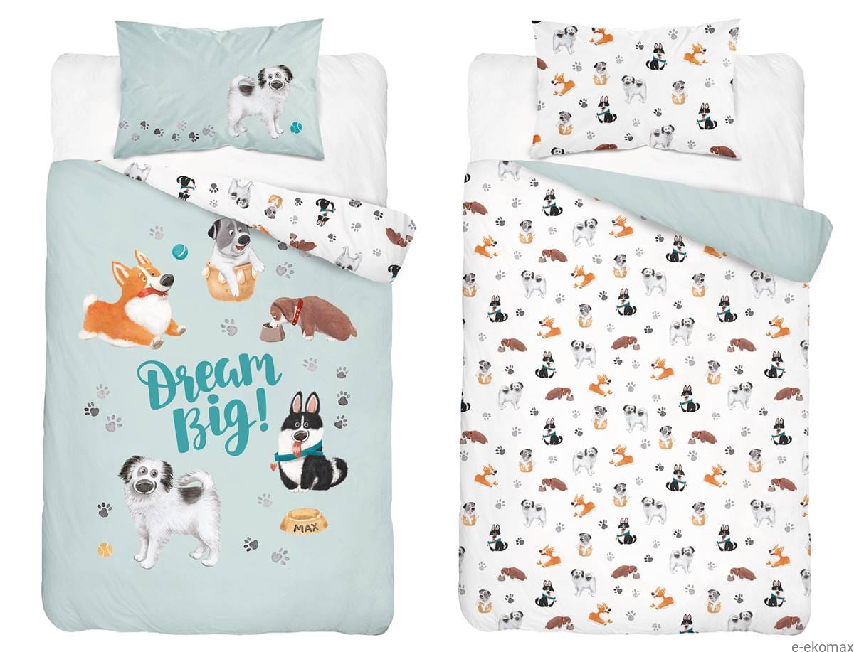 Komplet pościeli bawełnianej miętowo białej do łóżeczka 100x135 Pieski