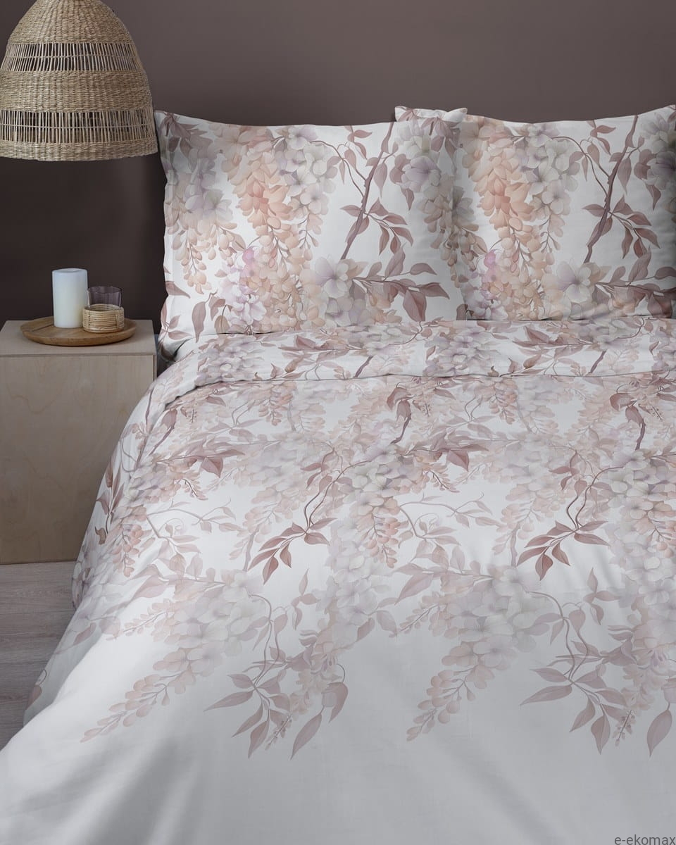 Komplet pościeli z satyny bawełnianej 220x200 w kwiaty glicynii Home Satin