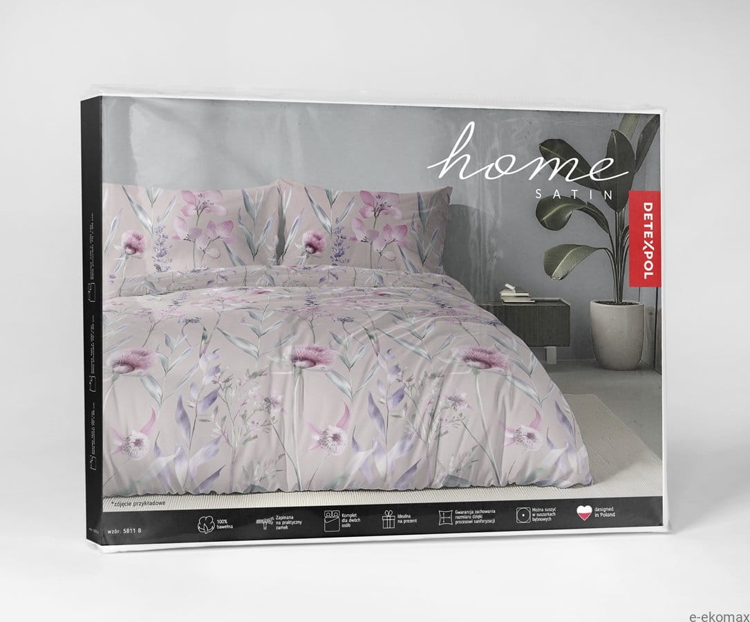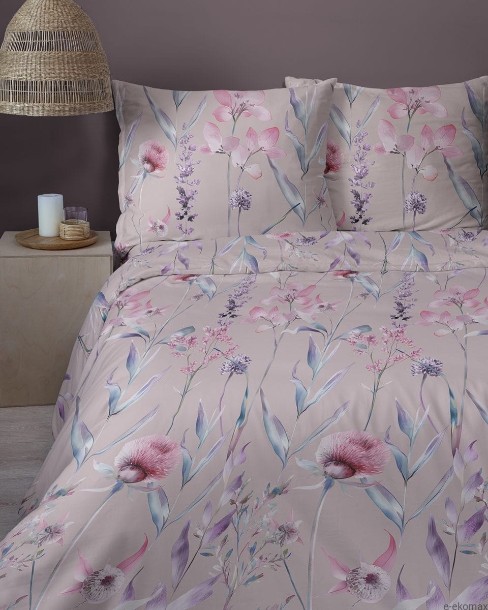 Komplet pościeli z satyny bawełnianej 220x200 w pudrowe kwiaty Home Satin