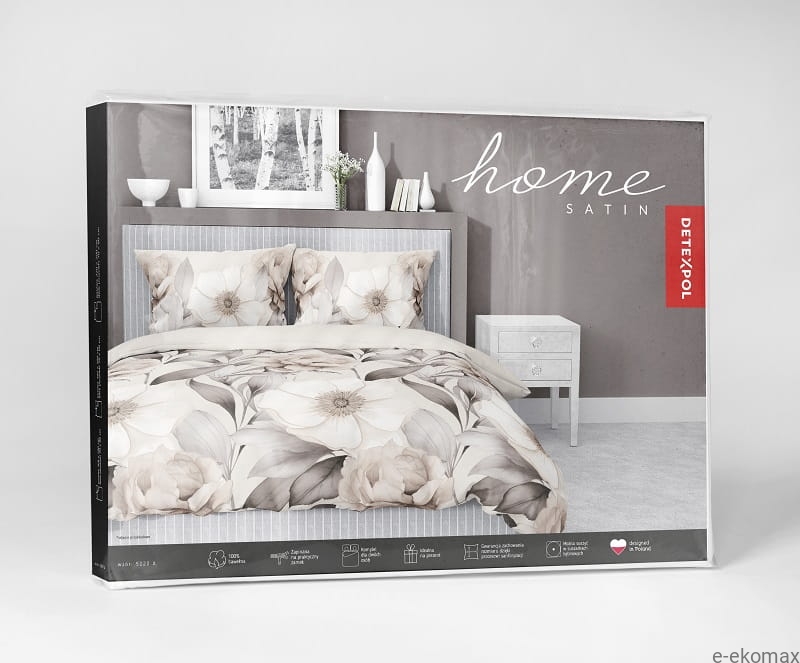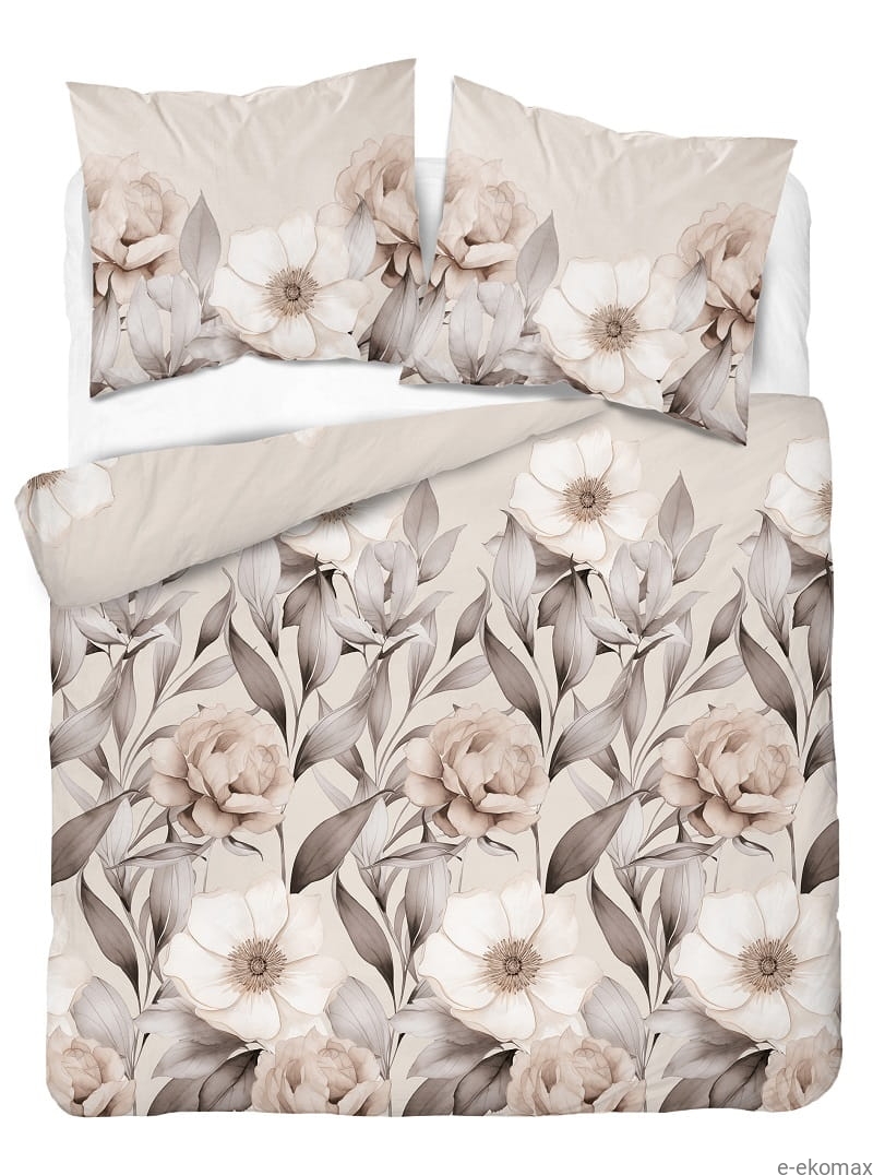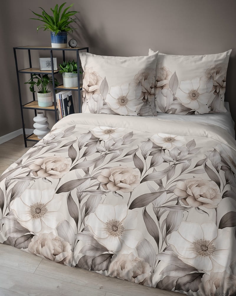 Komplet pościeli z satyny bawełnianej beżowo brązowej 220x200 w kwiaty
