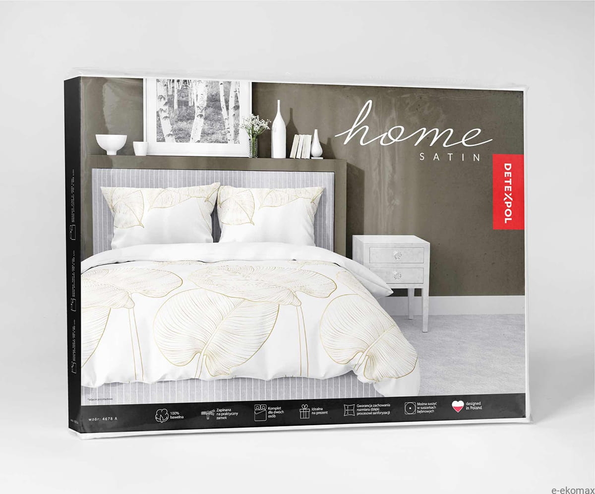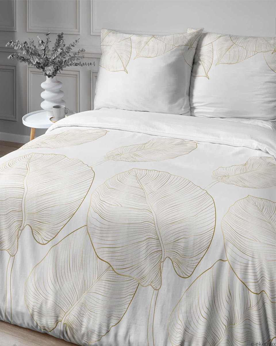 Komplet pościeli z satyny bawełnianej białej 220x200 w złote liście Home Satin