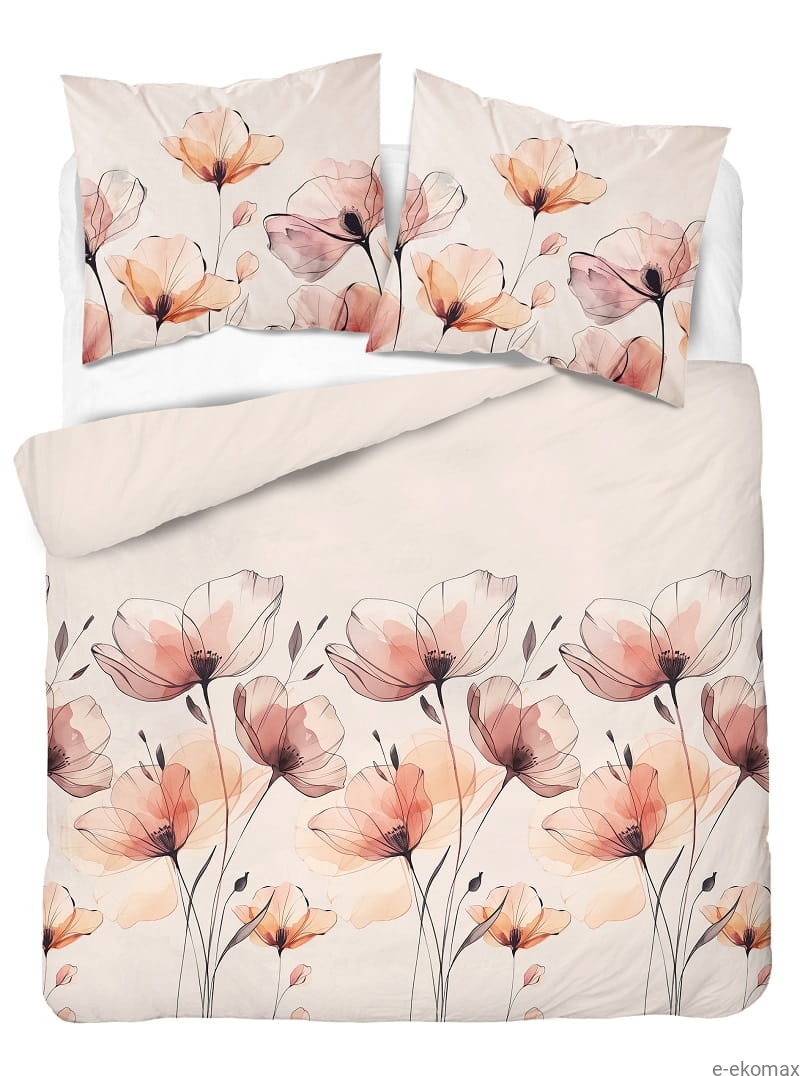Komplet pościeli z satyny bawełnianej kremowej 220x200 w maki
