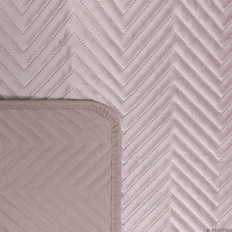 Narzuta została uszyta z mięsistej, niezwykle przyjemnej w dotyku tkaniny welwet, którą starannie wykończono lamówką zapobiegającą strzępieniu materiału. Pikowanie w jodełkę wykonane bezszwową techniką hot press nie tylko poprawia estetykę produktu, ale także zwiększa jego wytrzymałość i sprawia, że może on bez przeszkód służyć Ci przez długie lata.
