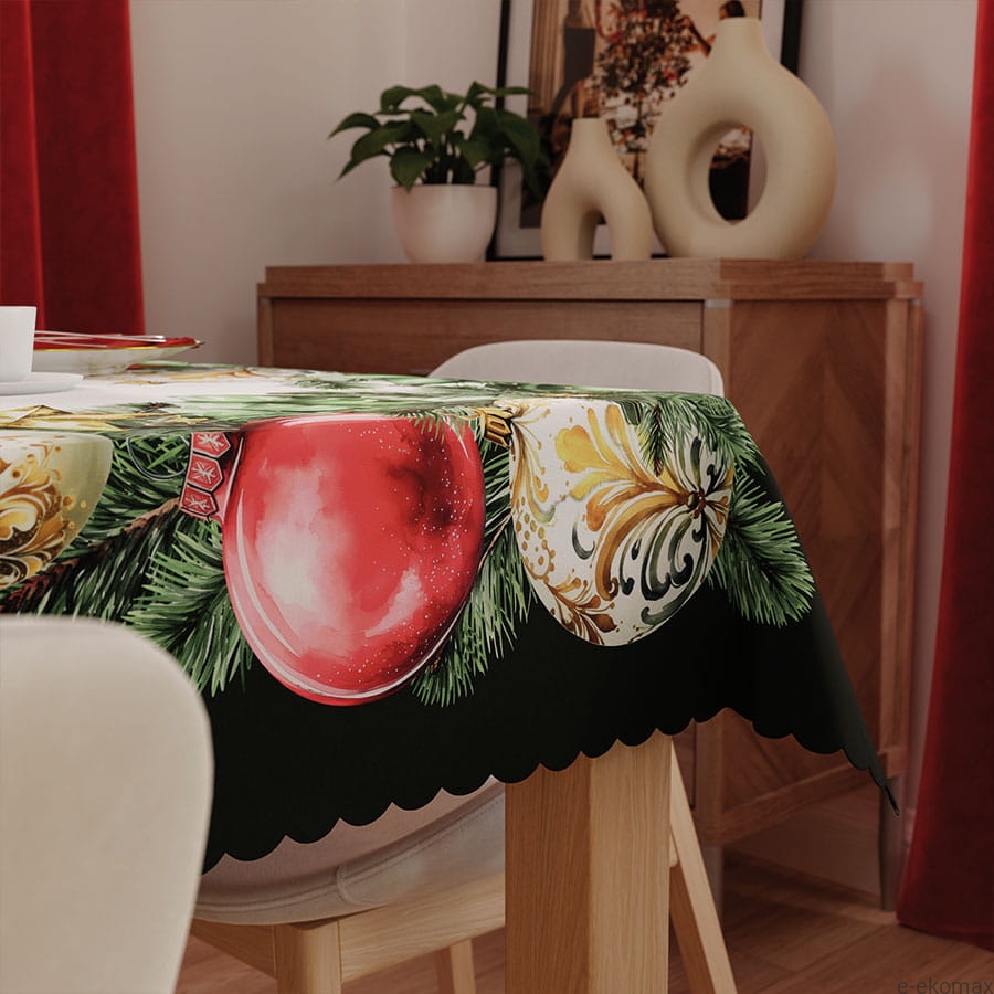 Obrus wodoodporny świąteczny 140x220 Bombki