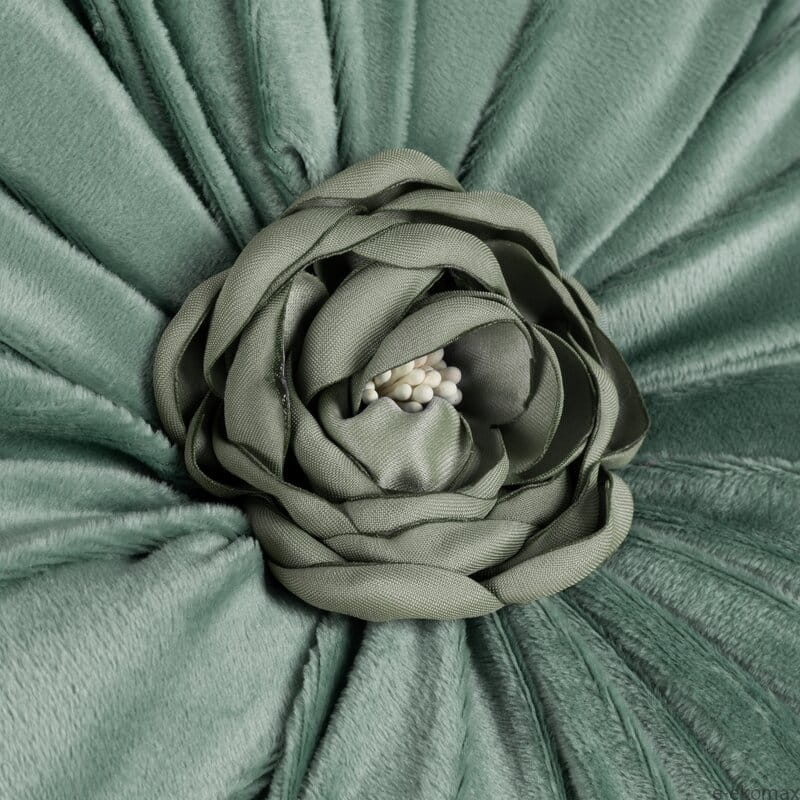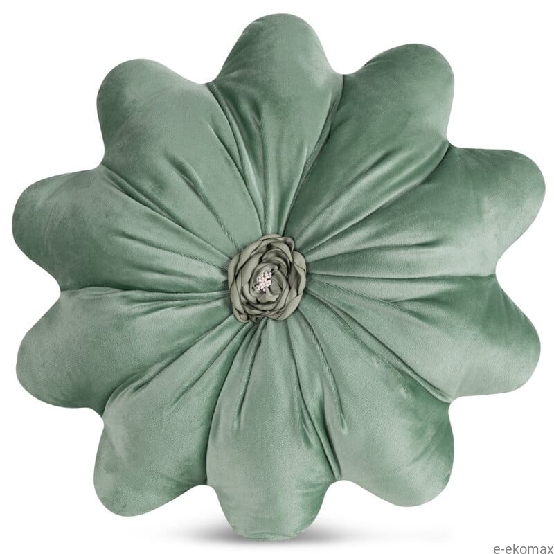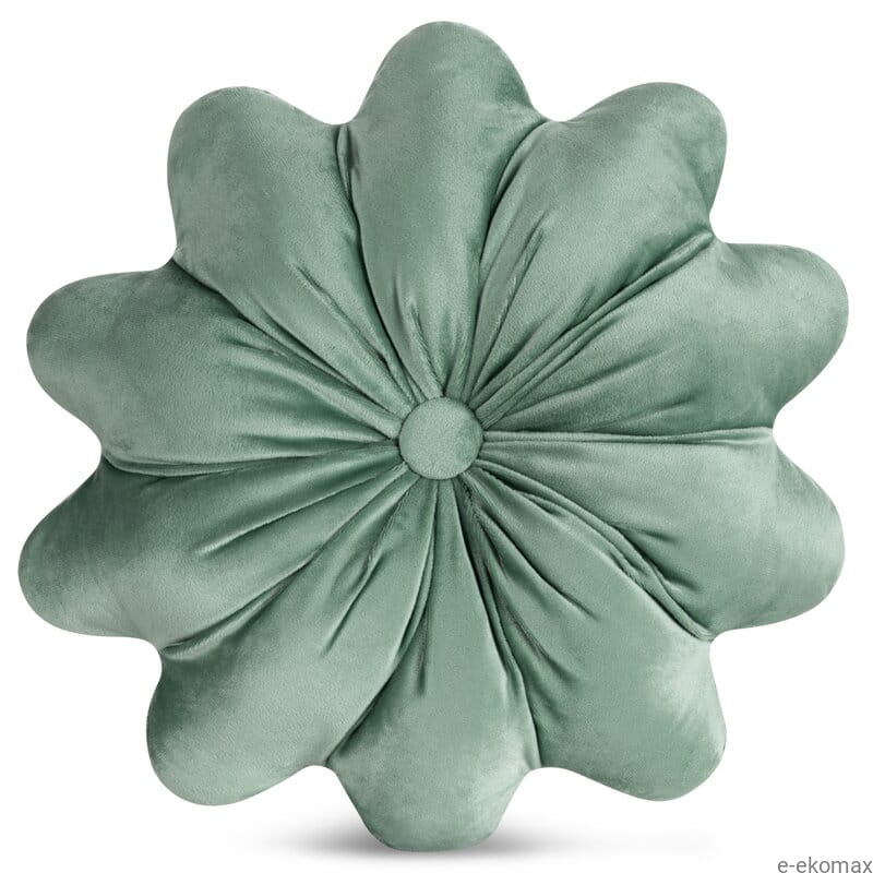 Welwetowa poduszka dekoracyjna w kształcie kwiatu o średnicy 40 cm w modnym, szałwiowym odcieniu to subtelny i elegancki dodatek do każdej aranżacji. Jej efektowna forma inspirowana rozkwitającym kwiatem zachwyca miękko uformowanymi płatkami oraz dekoracyjnym środkiem, który nadaje całości wyjątkowego charakteru.