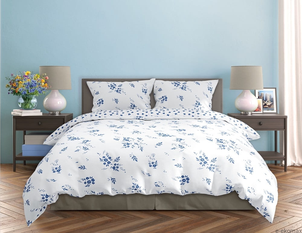 Pościel bawełna satynowa Milagro 160x200 Błękitne Kwiaty