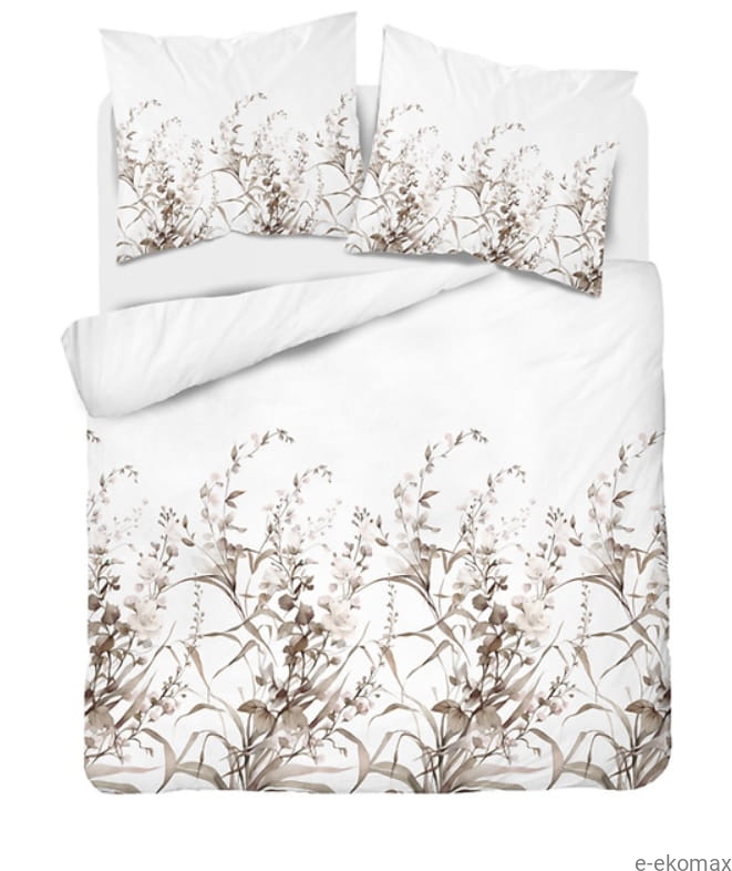 Pościel bawełniana 220x200 z delikatnym motywem roślinnym to idealny wybór dla osób ceniących spokojne, naturalne aranżacje sypialni. Na jasnym, białym tle subtelnie rozrysowano botaniczne gałązki i drobne kwiaty w odcieniach beżu, taupe i ciepłego brązu. Lekki, akwarelowy wzór tworzy harmonijną i kojącą kompozycję, która wprowadza do wnętrza atmosferę relaksu i przytulności.