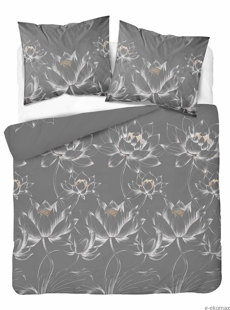 Pościel bawełniana 100% szara 220x200 kwiaty lotosu