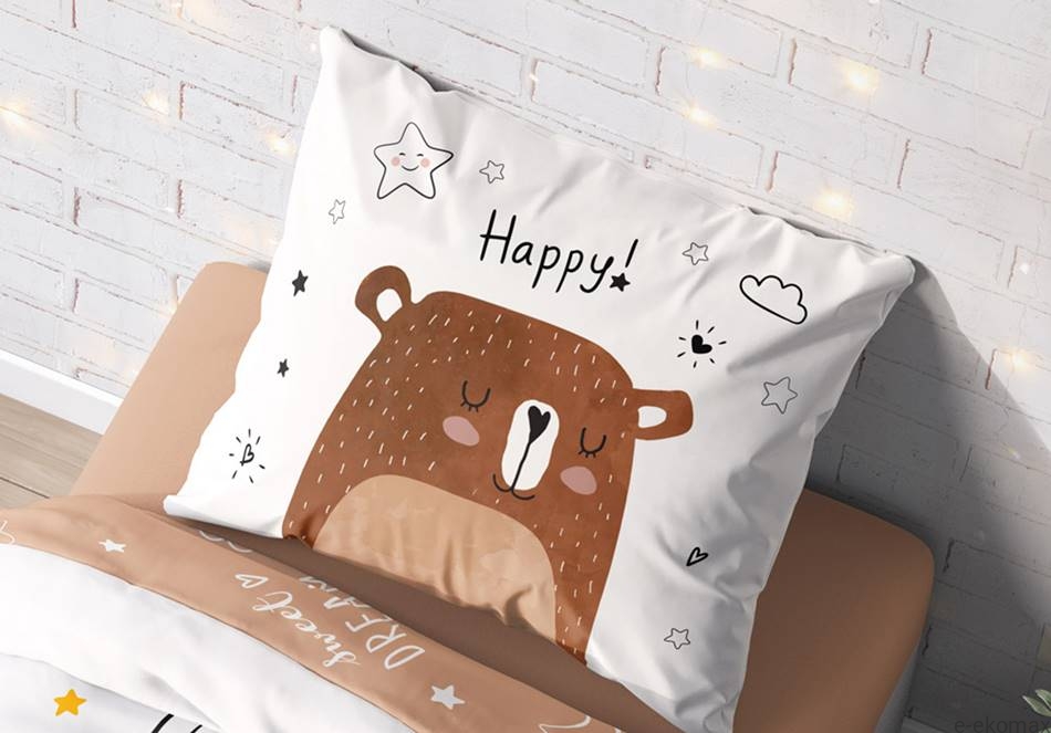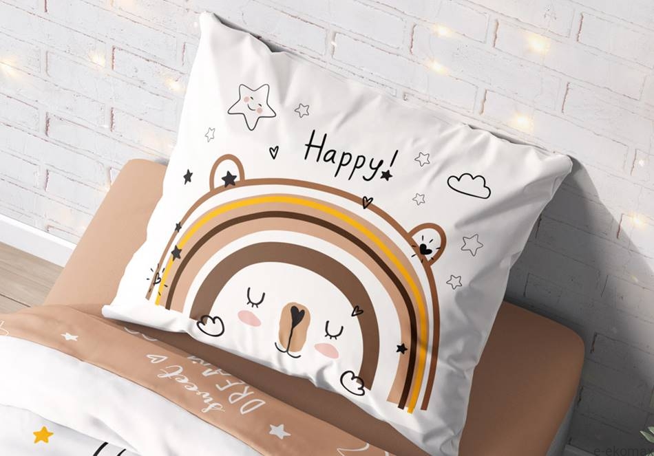 Wprowadź radość i poczucie bezpieczeństwa do pokoju swojego dziecka dzięki pościeli 160x200 z motywem sympatycznego misia otoczonego uśmiechniętymi gwiazdkami i pozytywnymi napisami. Pościel w jasnej kolorystyce i ciepłych odcieniach brązu oraz beżu zachęca do snu, tworząc bajkową atmosferę sprzyjającą relaksowi i spokojnym snom. To doskonały wybór do każdego dziecięcego pokoju – zarówno dla dziewczynek, jak i chłopców.