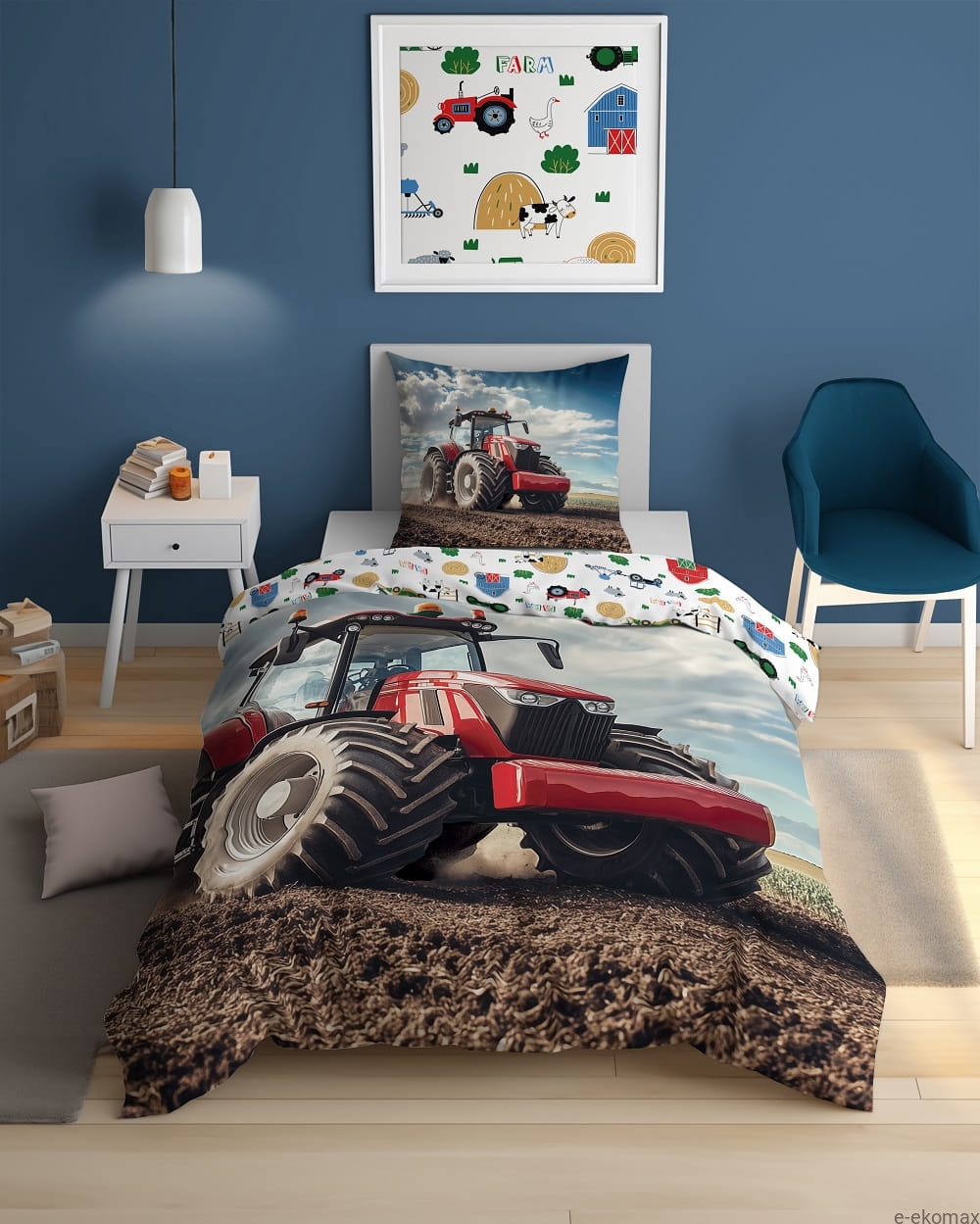 Pościel 140x200 została wykonana w 100% z naturalnej bawełny, która jest miękka, przewiewna i przyjazna dla skóry. Tkanina zapewnia komfortowy sen przez cały rok, dobrze odprowadza wilgoć i zachowuje swoje właściwości nawet po wielu praniach. Nadruk jest trwały i odporny na blaknięcie, dzięki czemu intensywna czerwień traktora oraz detale grafiki pozostają wyraziste na długo.