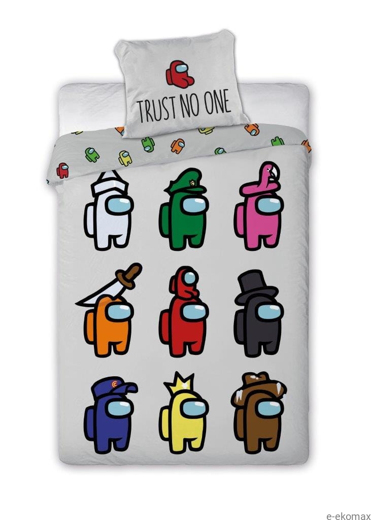 Zestaw zawiera poszwę o wymiarze 160x200 oraz poszewkę na poduszkę 70x80. To doskonały prezent dla każdego młodego gracza, który pragnie mieć swoich ulubionych załogantów (i impostorów) zawsze blisko – nawet podczas snu!