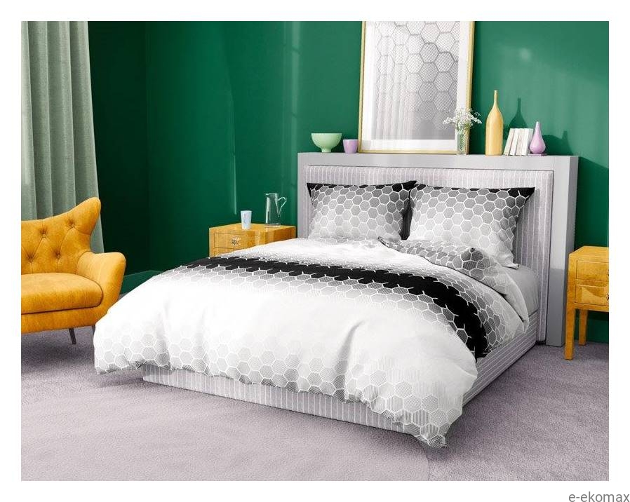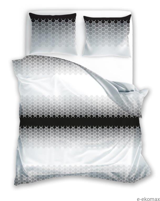 Pościel 220x200 cm z graficznym wzorem inspirowanym strukturą plastra miodu to propozycja dla osób, które cenią nowoczesny styl i niebanalne wzornictwo. Odcienie bieli, szarości i czerni płynnie przechodzą między sobą, tworząc efekt głębi i przestrzeni, a poziome pasy nadają całości elegancji i porządku. To połączenie geometrycznej precyzji z subtelną grą światła – idealne do sypialni w stylu modern, industrialnym lub minimalistycznym.