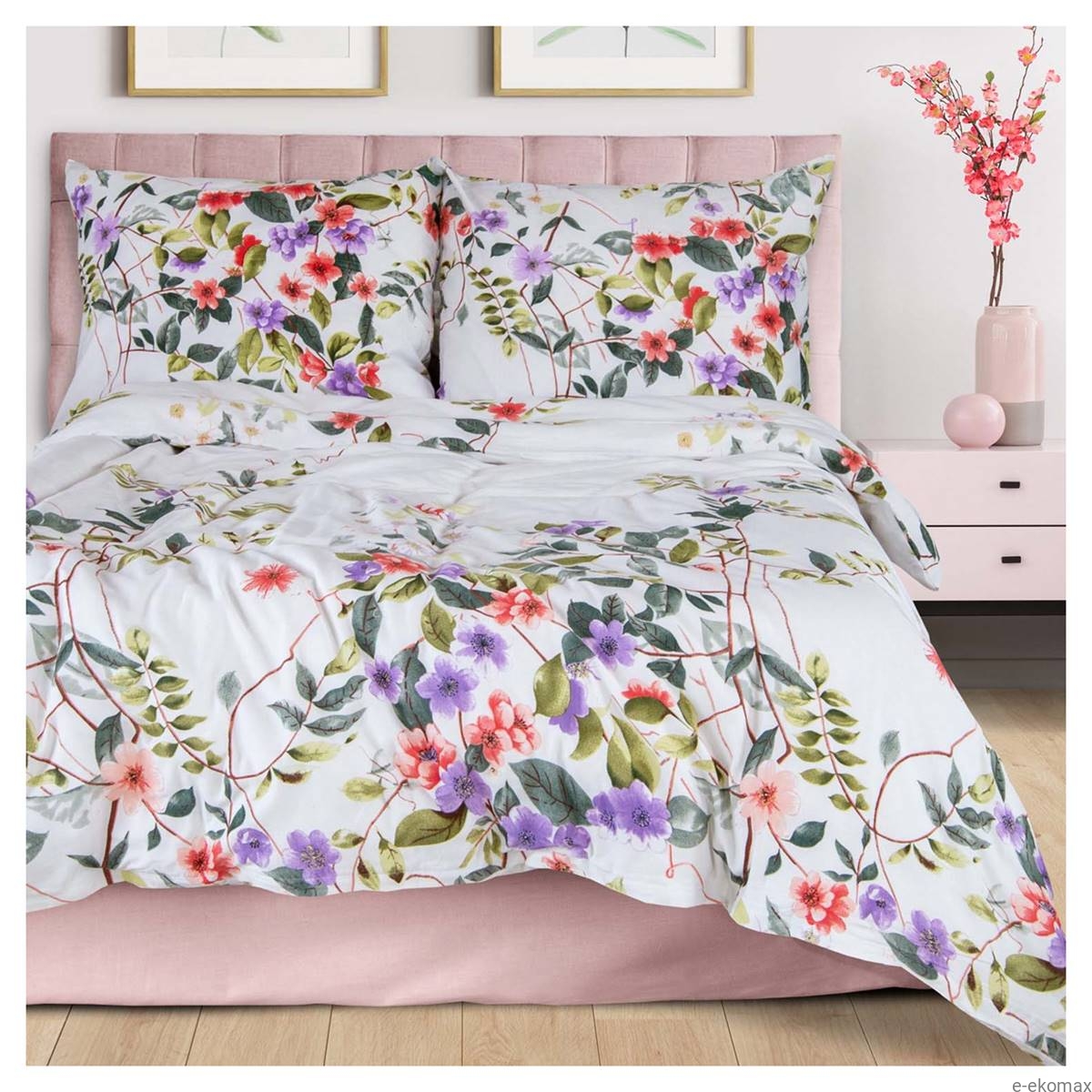 Pościel z bawełny satynowej 220x200 Kolorowe Kwiaty