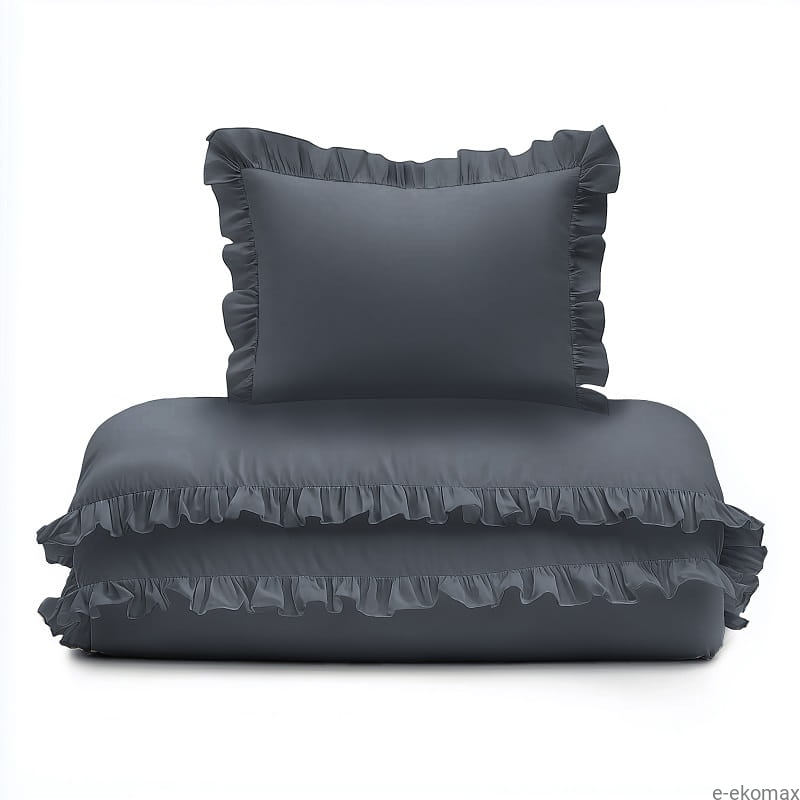Pościel PURE 90x120 z falbaną w kolorze denim to stylowa i elegancka propozycja, która doskonale sprawdzi się zarówno w nowoczesnych, jak i klasycznych wnętrzach. Jej głęboki, grafitowy odcień wprowadza do sypialni przytulną atmosferę, a dekoracyjne falbany dodają jej wyjątkowego uroku i subtelnego charakteru. Ta pościel stanie się nie tylko funkcjonalnym elementem wyposażenia, ale także stylowym akcentem w każdej aranżacji.