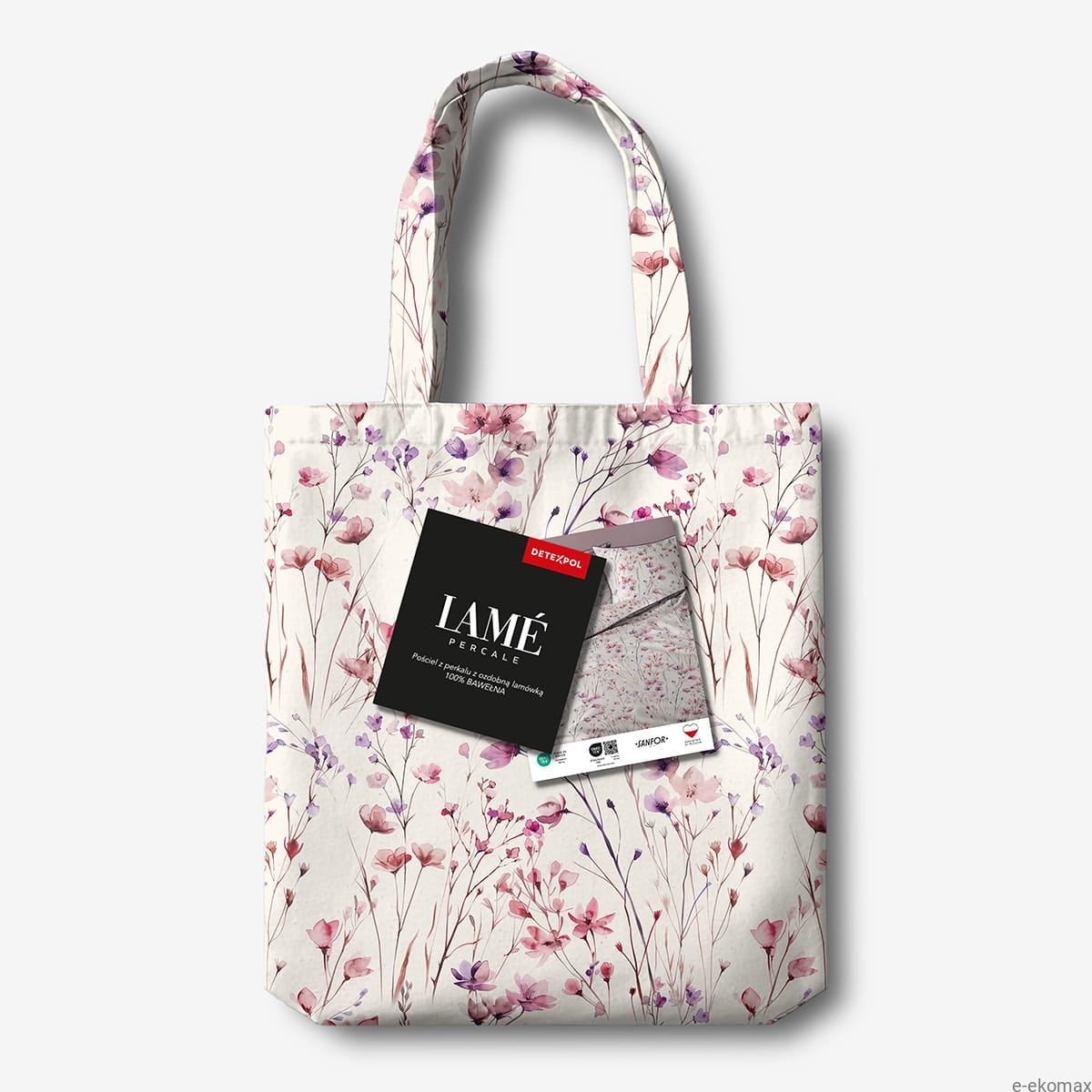 Pościel z perkalu 160x200 Różowa Łąka Lame Percale