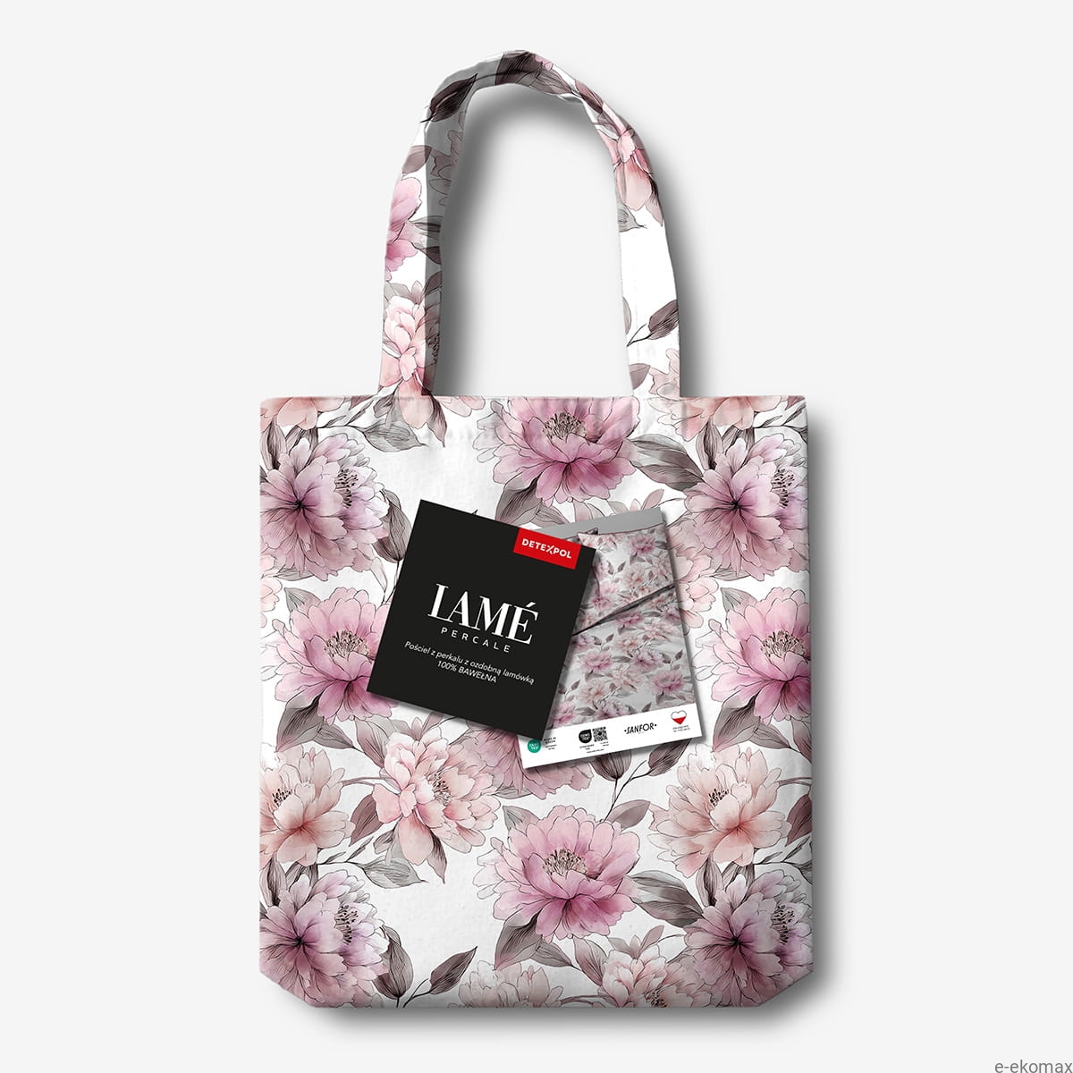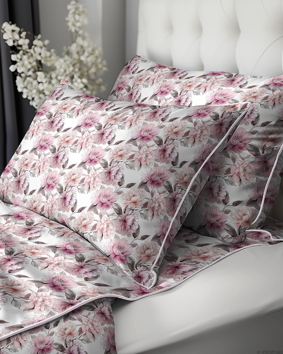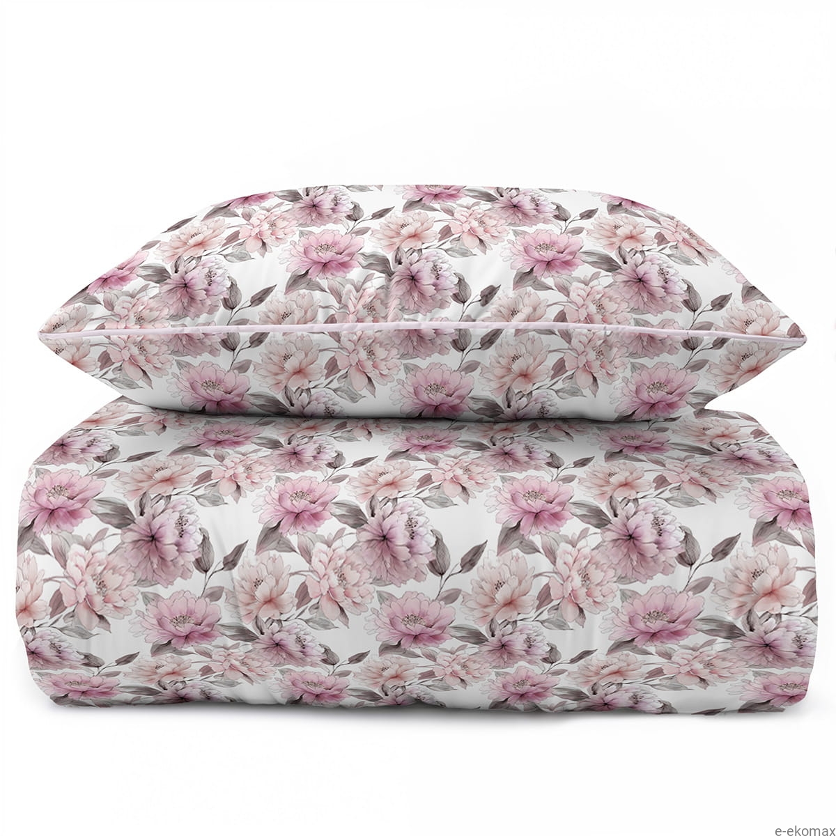 Pościel z perkalu 160x200 Różowe Kwiaty Piwonii Lame Percale