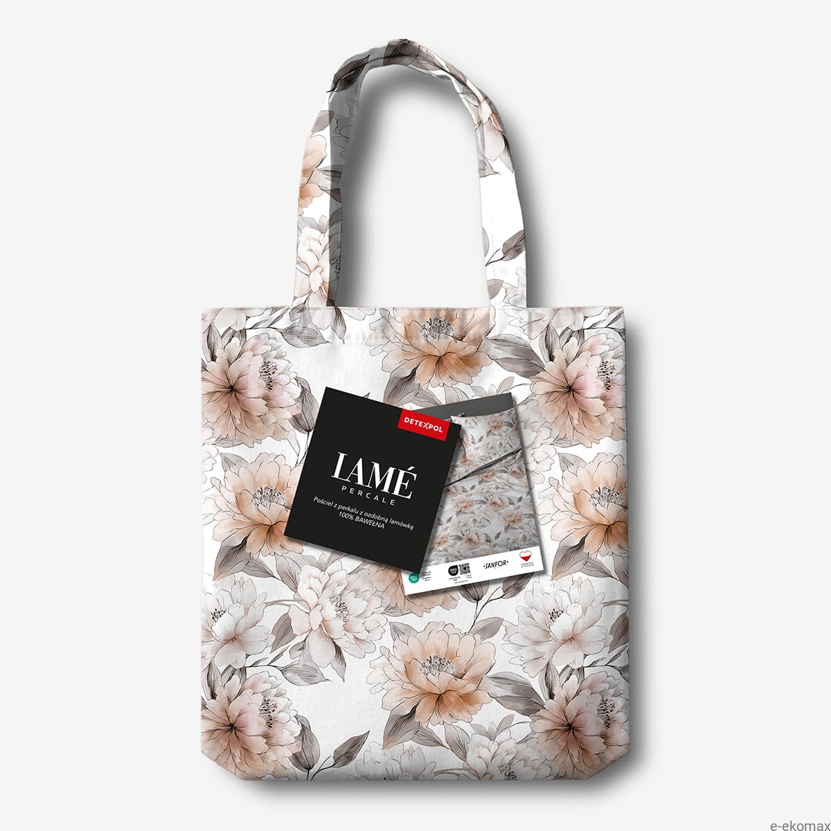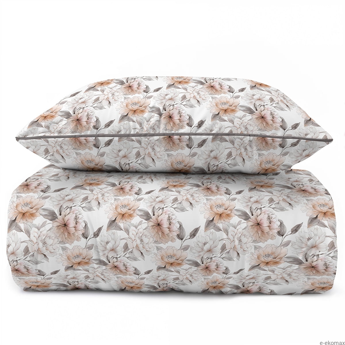 Pościel z perkalu 160x200 Brzoskwiniowe Kwiaty Piwonii Lame Percale