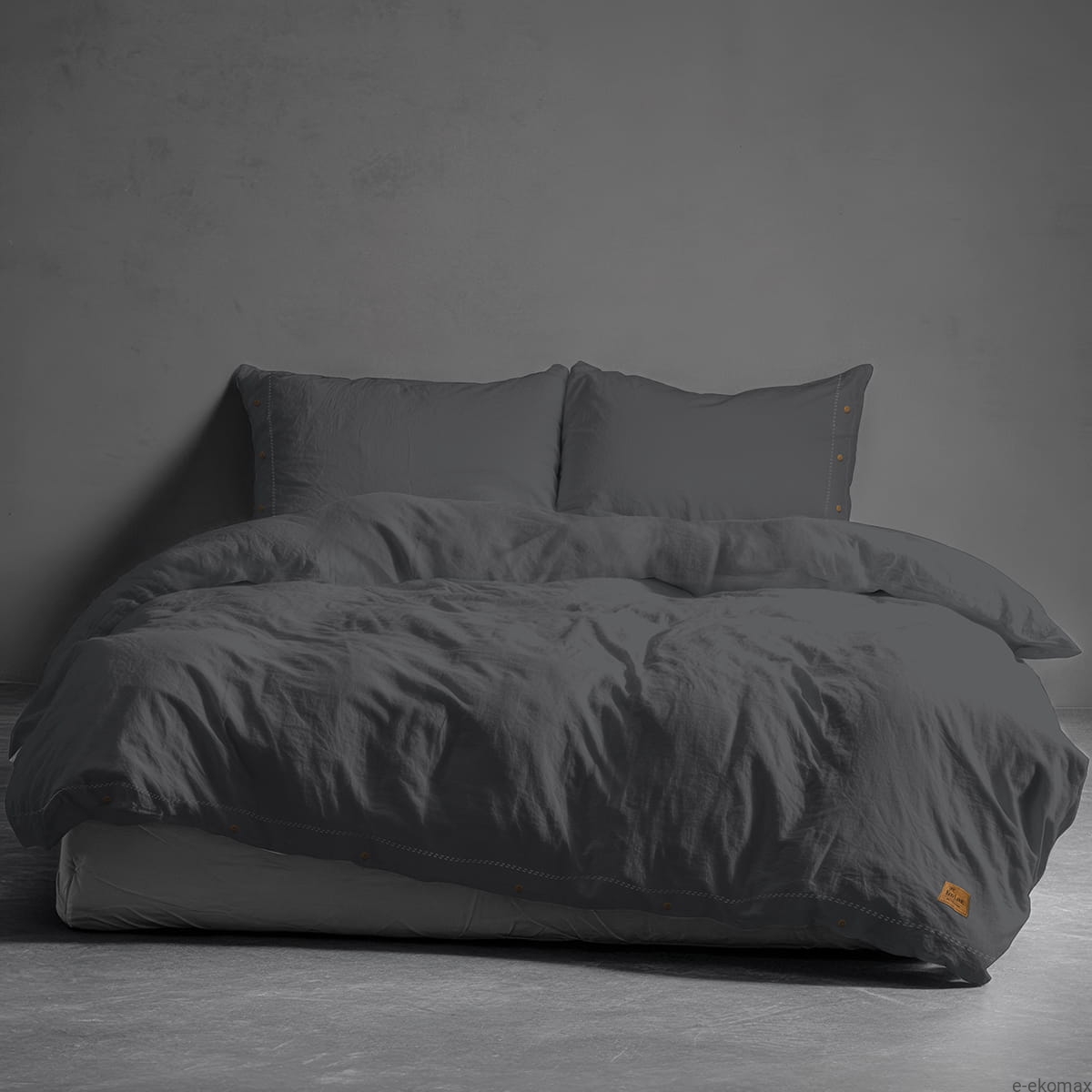 Kolekcja PURE ECO LINE to doskonałe połączenie minimalistycznego designu, naturalnych materiałów oraz starannego wykonania. Ten elegancki komplet pościeli w głębokim grafitowym kolorze nadaje sypialni nowoczesnego charakteru i subtelnej elegancji, doskonale komponując się z wnętrzami w stylu loftowym, skandynawskim oraz klasycznym.