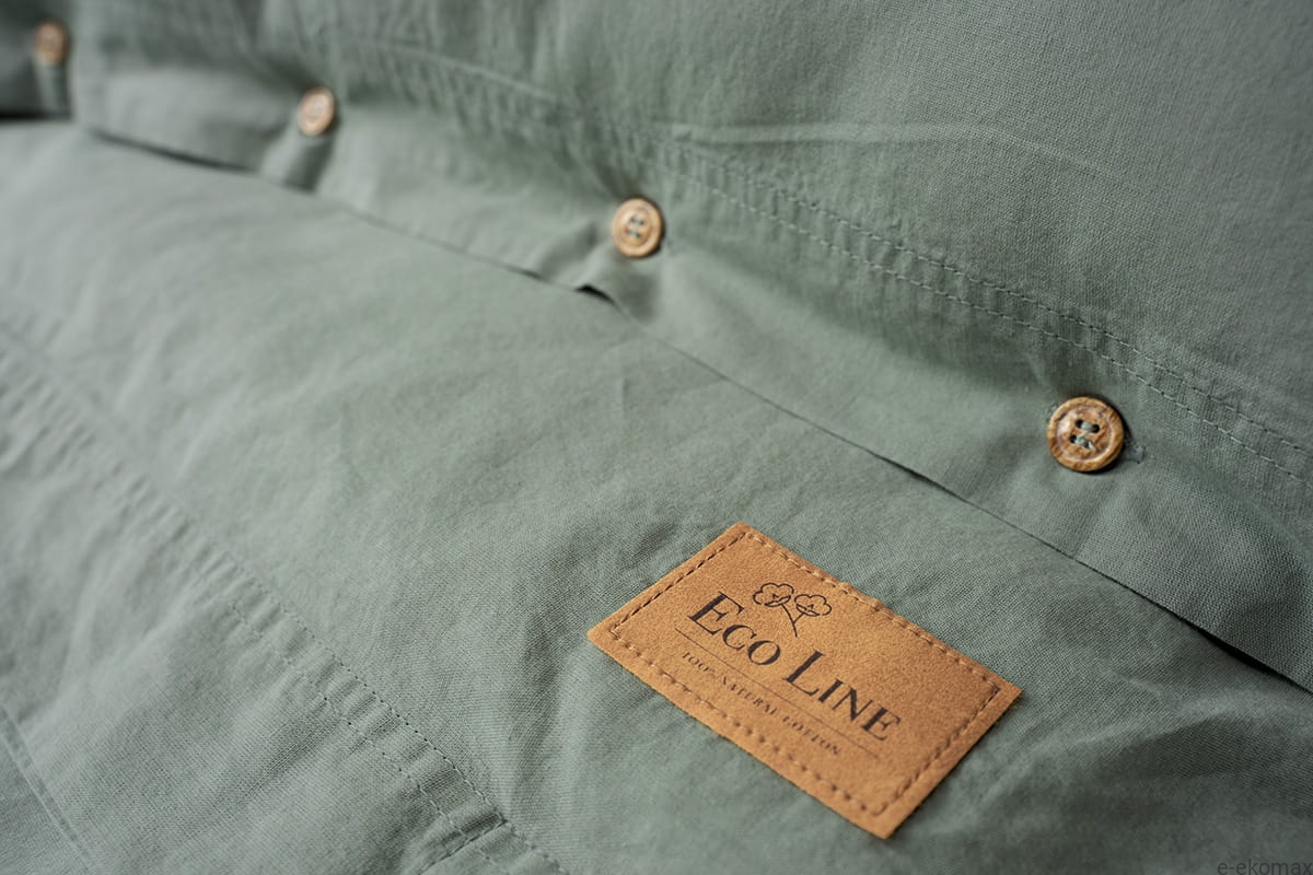 Dzięki zastosowaniu enzymatycznego zmiękczania, materiał jest wyjątkowo miękki i przyjemny w dotyku, a jednocześnie trwały i odporny na wielokrotne pranie. Starannie wykonane podwójne przeszycia wzmacniają strukturę pościeli, natomiast ozdobne guziki nadają jej stylowego, naturalnego charakteru.