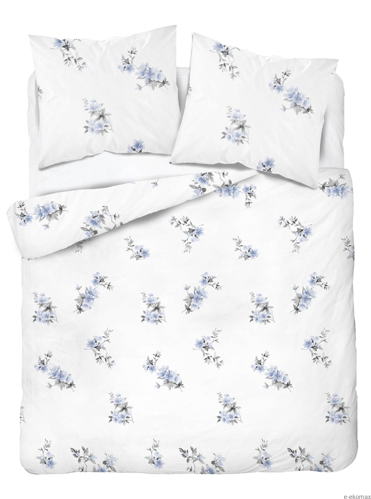 Pościel satyna bawełniana biała Home Satin 220x200 w błękitne kwiaty