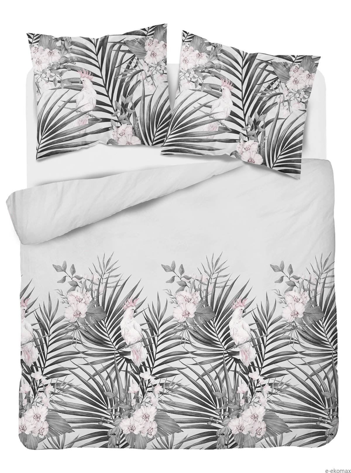 Pościel satyna bawełniana popielata w stalowe liście Home Satin 220x200 z papugą