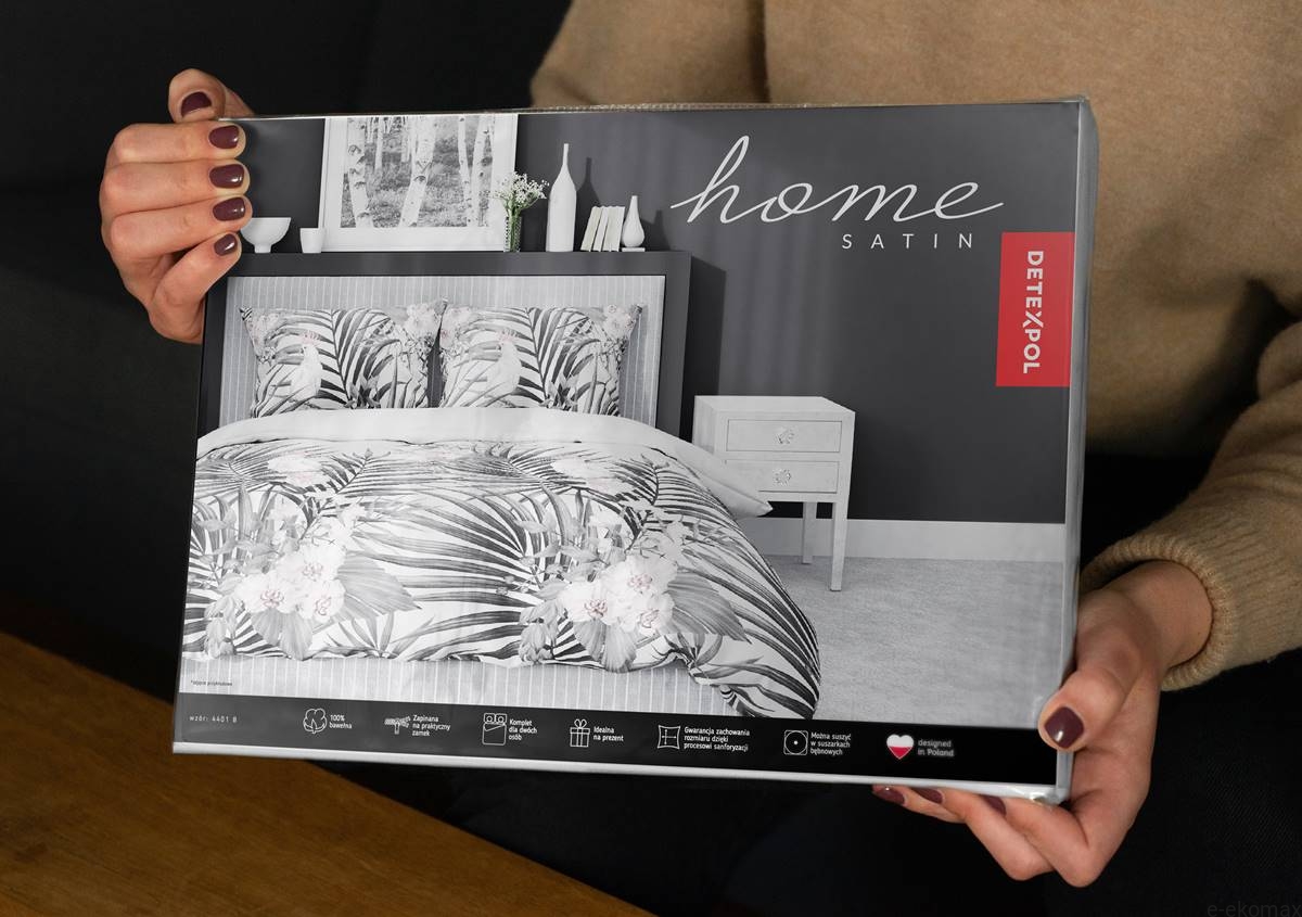 W zestawie znajduje się poszwa na kołdrę o wymiarach 220x200 cm oraz dwie poszewki na poduszki 70x80 cm. Komplet uszyto z wysokiej jakości satyny bawełnianej, która jest gładka, miękka i przyjemnie chłodna w dotyku. Dzięki gramaturze 115 g/m² materiał łączy lekkość z wytrzymałością, zapewniając komfort przez cały rok. Zamek błyskawiczny wszyty w poszewkach i poszwie to praktyczne rozwiązanie, które ułatwia codzienne użytkowanie. Produkt posiada certyfikat Oeko-Tex® Standard 100, potwierdzający bezpieczeństwo dla skóry – także tej wrażliwej.