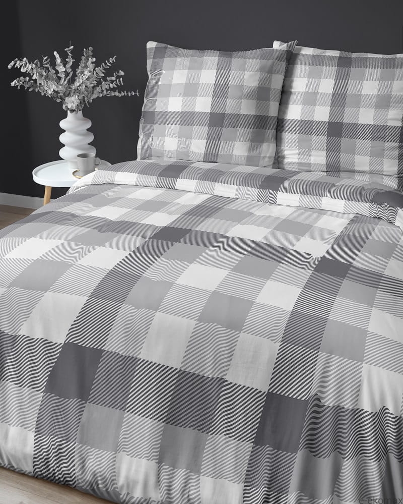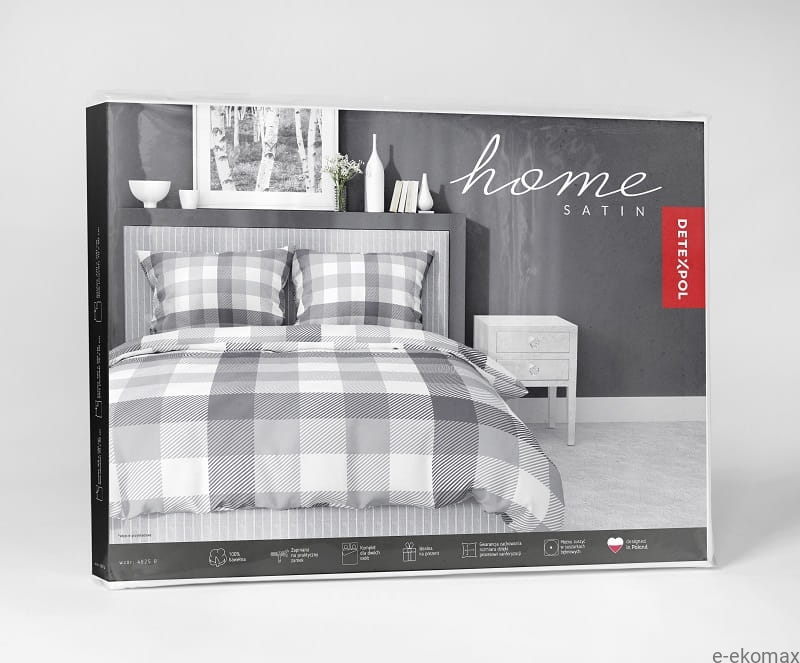 Pościel z satyny bawełnianej szaro biała 180x200 Home Satin kratka