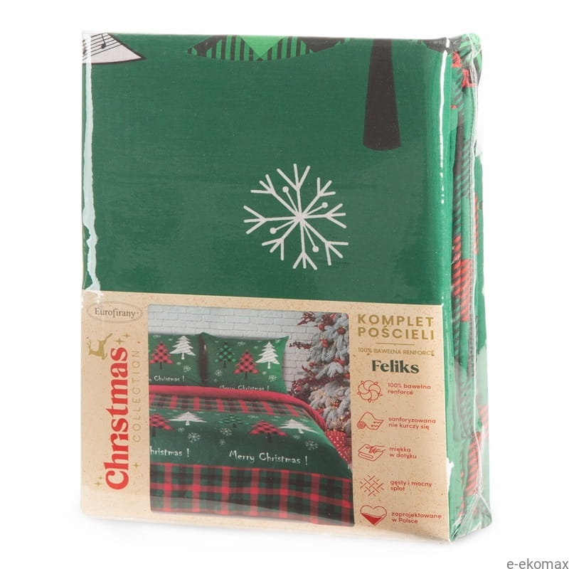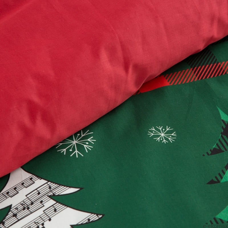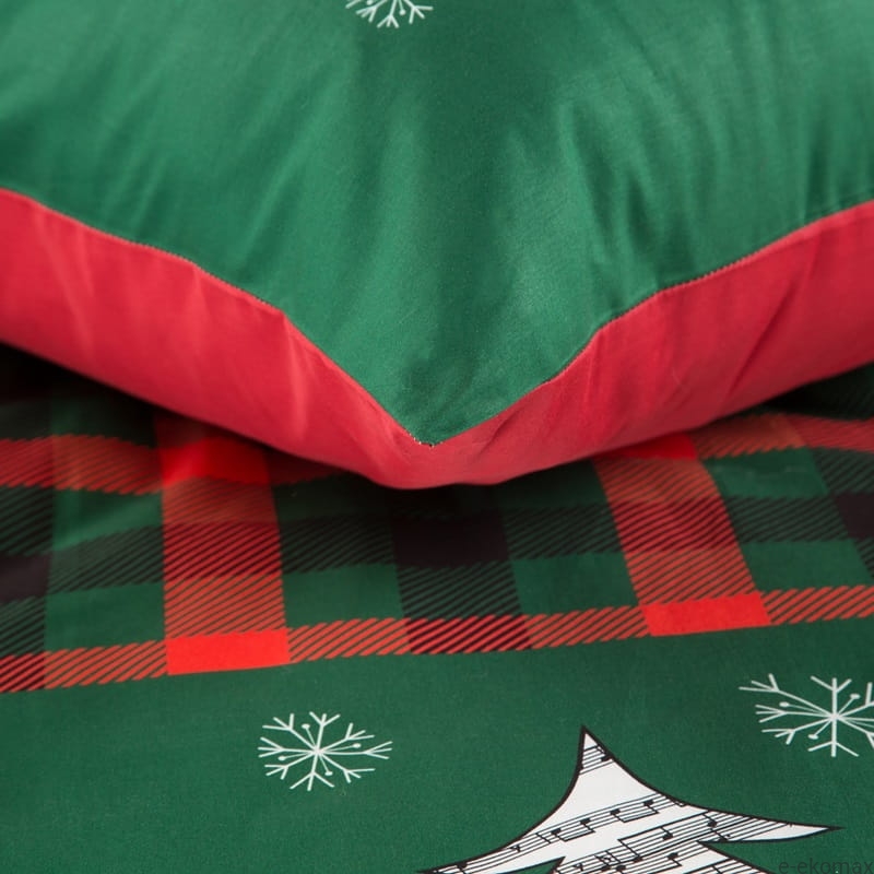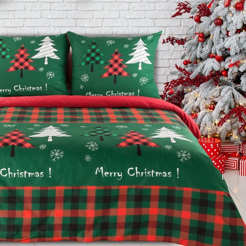Wprowadź świąteczną atmosferę do swojej sypialni z kompletem pościeli z bawełny renforce o wymiarach 220x200. Pościel ozdobiona jest wesołym, świątecznym motywem choinek na zielonym tle, z napisem "Merry Christmas", co doskonale podkreśla radosny klimat Bożego Narodzenia. Dodatkowo, klasyczny wzór czerwono-zielonej kraty dodaje tradycyjnego, świątecznego uroku, idealnie pasującego do zimowych dekoracji.