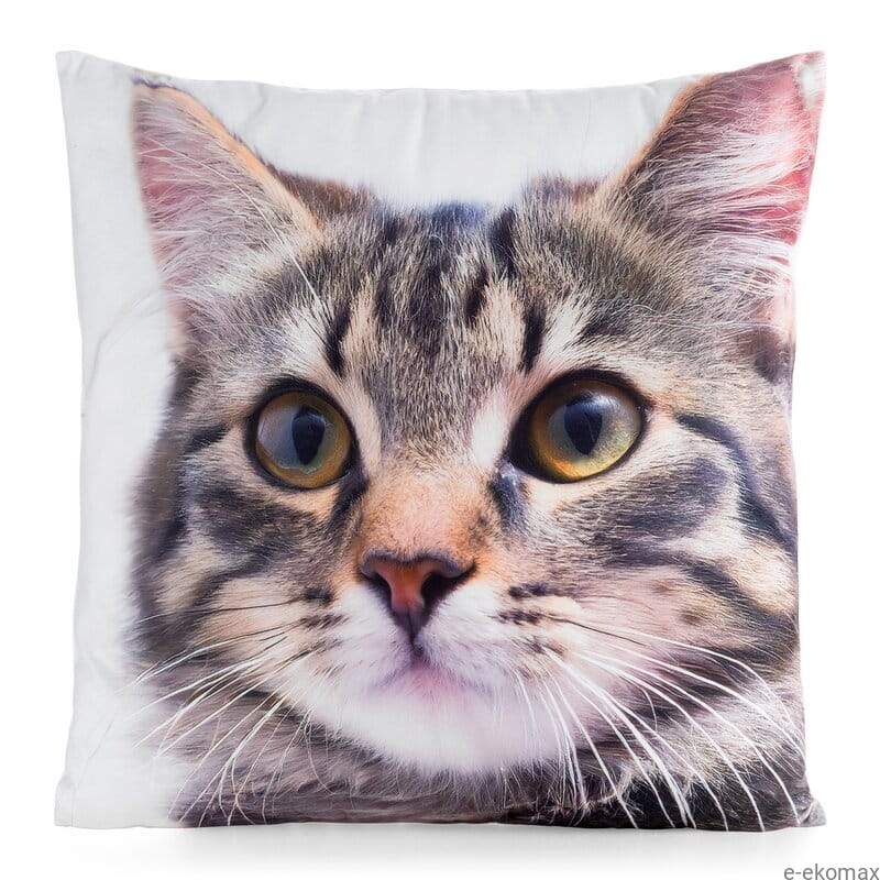 Poszewka dekoracyjna z realistycznym nadrukiem przedstawiającym kota dachowca to doskonały dodatek do wnętrza dla miłośników czworonogów. Wykonana z wysokiej jakości tkaniny o gramaturze 200 g/m², zapewnia trwałość oraz komfort użytkowania. Druk cyfrowy odwzorowuje najdrobniejsze detale futra, nadając poduszce unikalny i przyciągający wzrok wygląd. Dzięki standardowemu rozmiarowi 45 × 45 cm, poszewka pasuje na większość wypełnień, idealnie sprawdzając się jako dekoracja na sofie, łóżku czy fotelu.