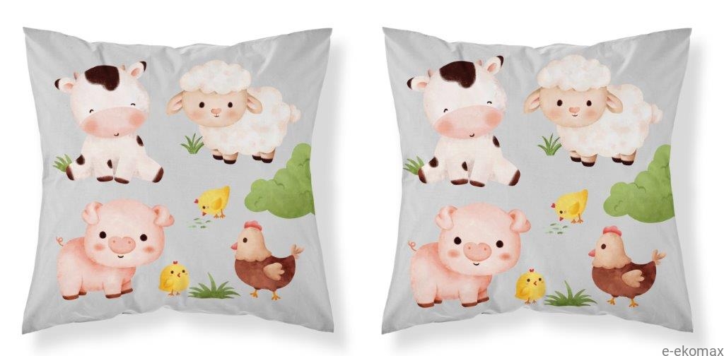 Poszewka dziecięca 40x40 cm z motywem zwierząt z farmy to uroczy element dekoracyjny, który rozweseli każdy dziecięcy pokój. Wykonana w 100% z wysokiej jakości bawełny, jest przyjemna w dotyku i bezpieczna dla delikatnej skóry dziecka. Kolorowy nadruk z wesołymi zwierzątkami – krówką, owieczką, świnką i kurką – przyciąga wzrok i rozwija wyobraźnię malucha.