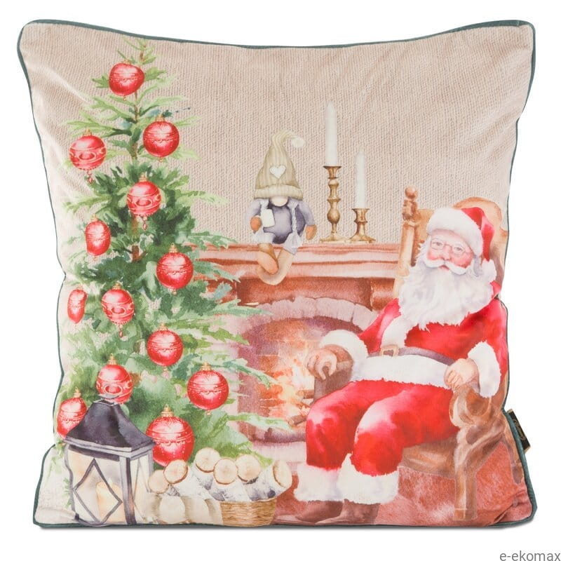 Poszewka dekoracyjna świąteczna 45x45 Święty Mikołaj przy Kominku