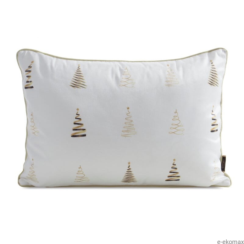 Wprowadź do swojego domu blask świątecznej elegancji dzięki dekoracyjnej poszewce w rozmiarze 35x50 cm. Biała tkanina ozdobiona została złotymi choinkami w różnych kształtach, które pięknie połyskują w świetle, dodając wnętrzu wyjątkowego uroku. Minimalistyczny, a zarazem luksusowy design sprawia, że poszewka świetnie komponuje się z klasycznymi i nowoczesnymi aranżacjami.