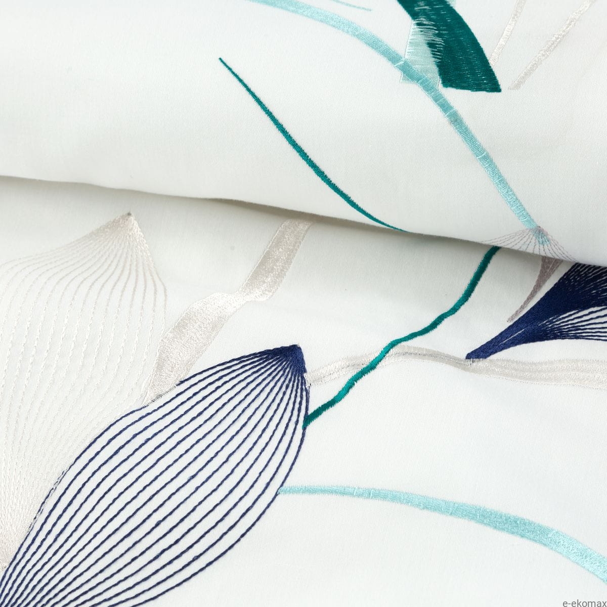 Kolekcja haftowana premium to wyjątkowe połączenie nowoczesnej elegancji z subtelnym, artystycznym wyrazem. Na tle kojącej, śmietankowej bieli rozpościera się finezyjny haft inspirowany naturą – liście i pnącza w odcieniach mięty, turkusu oraz szarości tworzą harmonijną kompozycję, która wnosi do sypialni spokój, świeżość i lekkość. To pościel, która nie tylko zachwyca wizualnie, ale też zaprasza do zanurzenia się w miękkości i wyciszenia po intensywnym dniu.